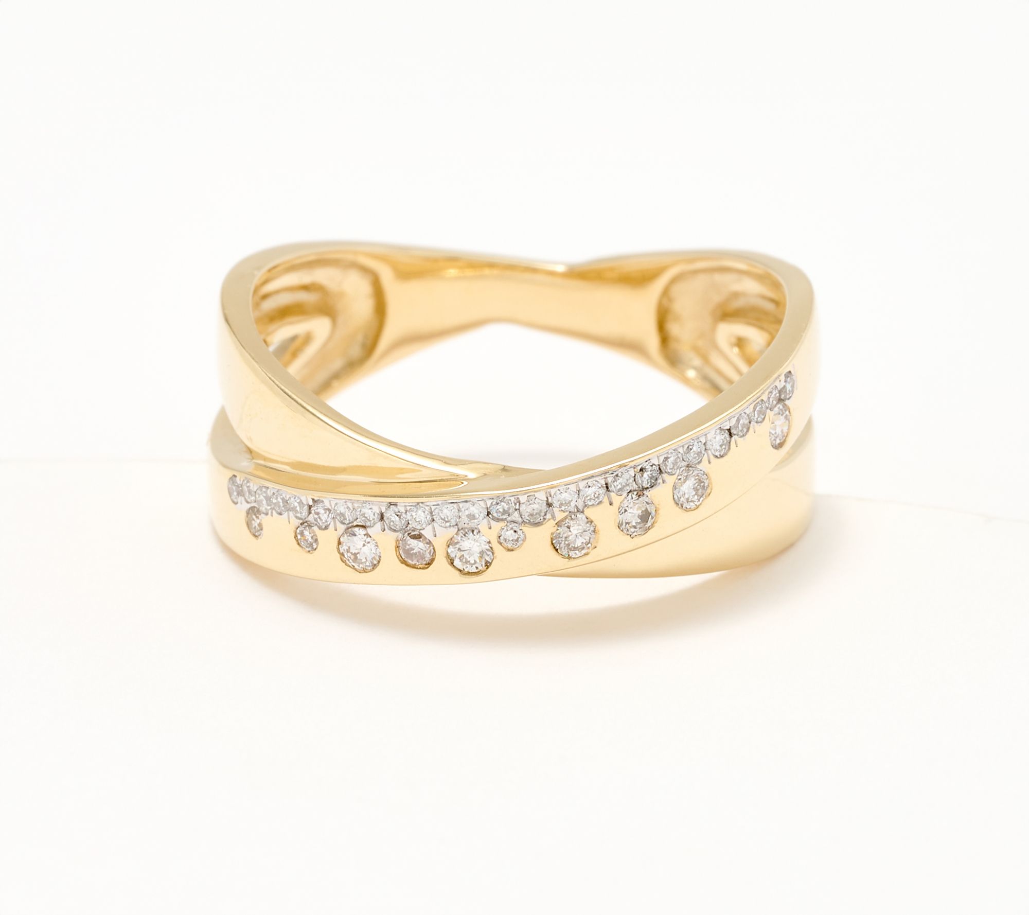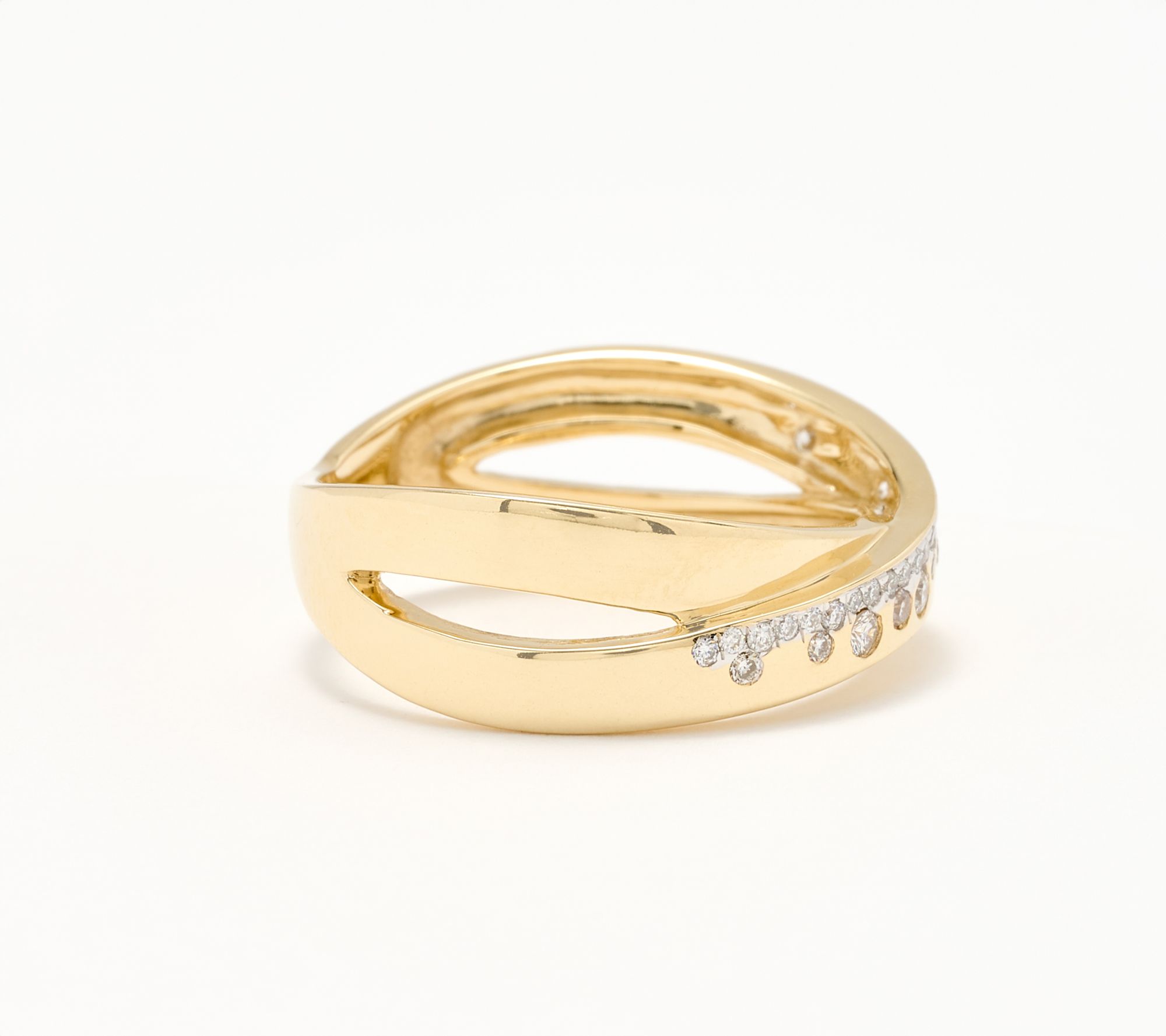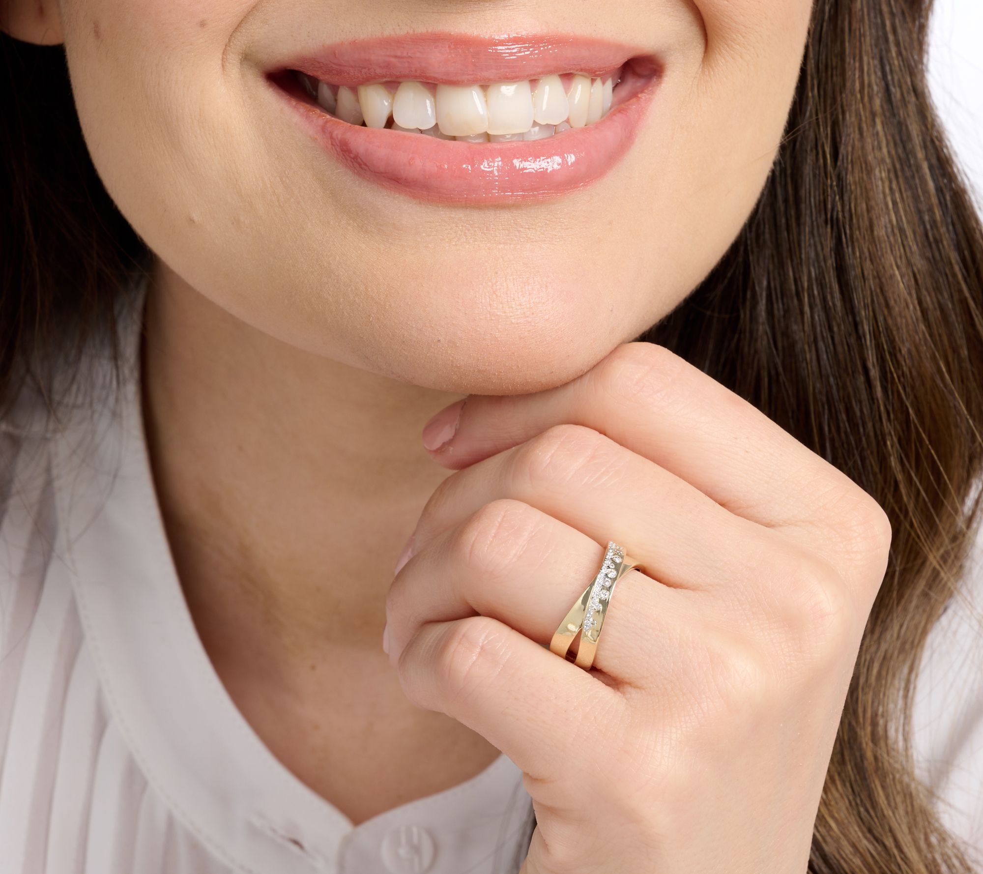 An understated yet sophisticated design of bezel-set diamonds, we love displaying this shimmery crossover ring on an unexpected digit and pairing with everyday looks -- think jeans and a tee or a simple sundress. From KALLATI.