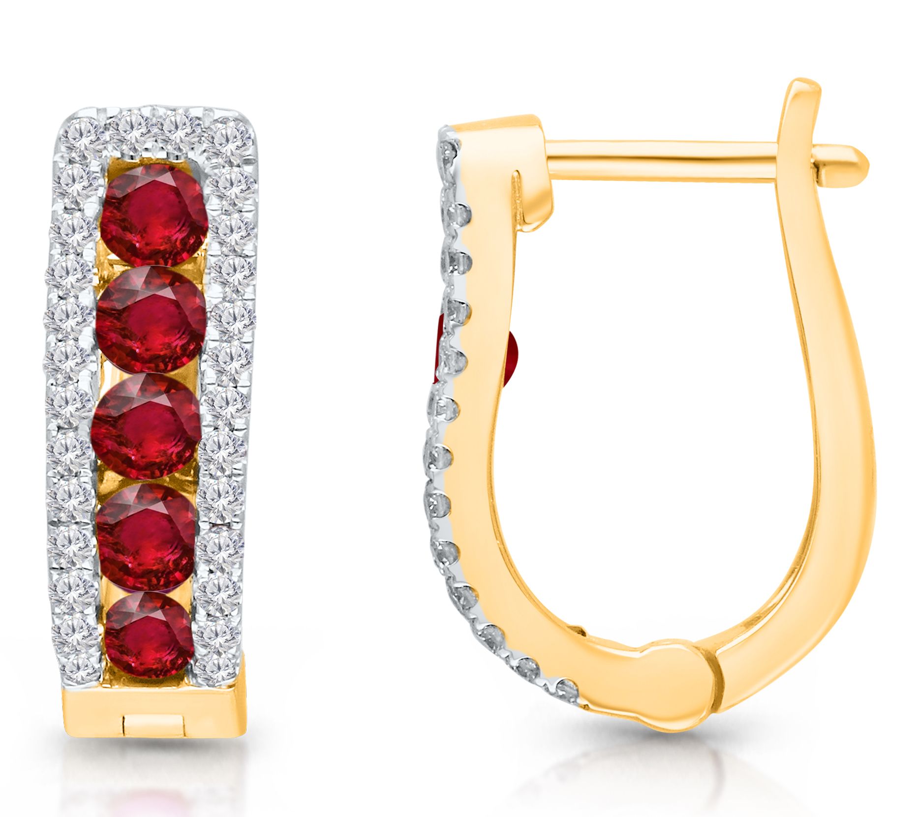 KALLATI Ruby & Diamond Hinged Hoop Earrings, 14K Gold