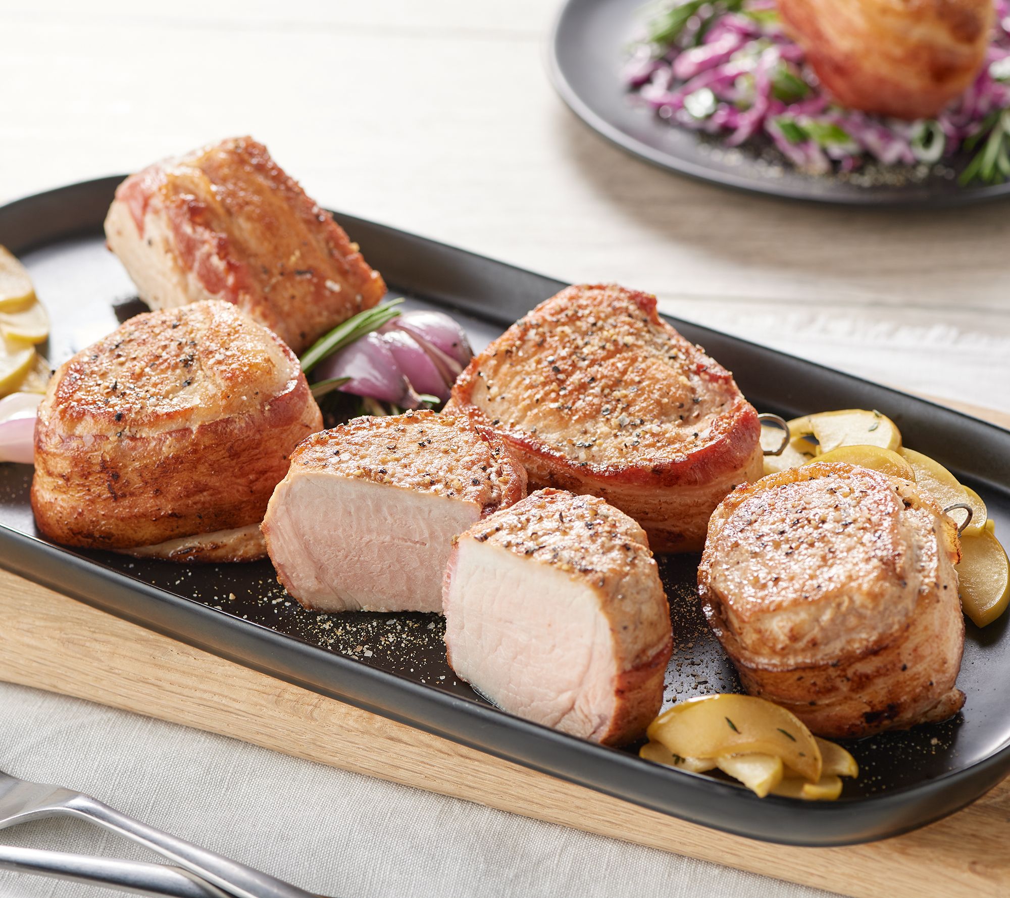 Tender, juicy pork chops wrapped in strips of hickory-smoked bacon? Now that's something you can sink your teeth into.