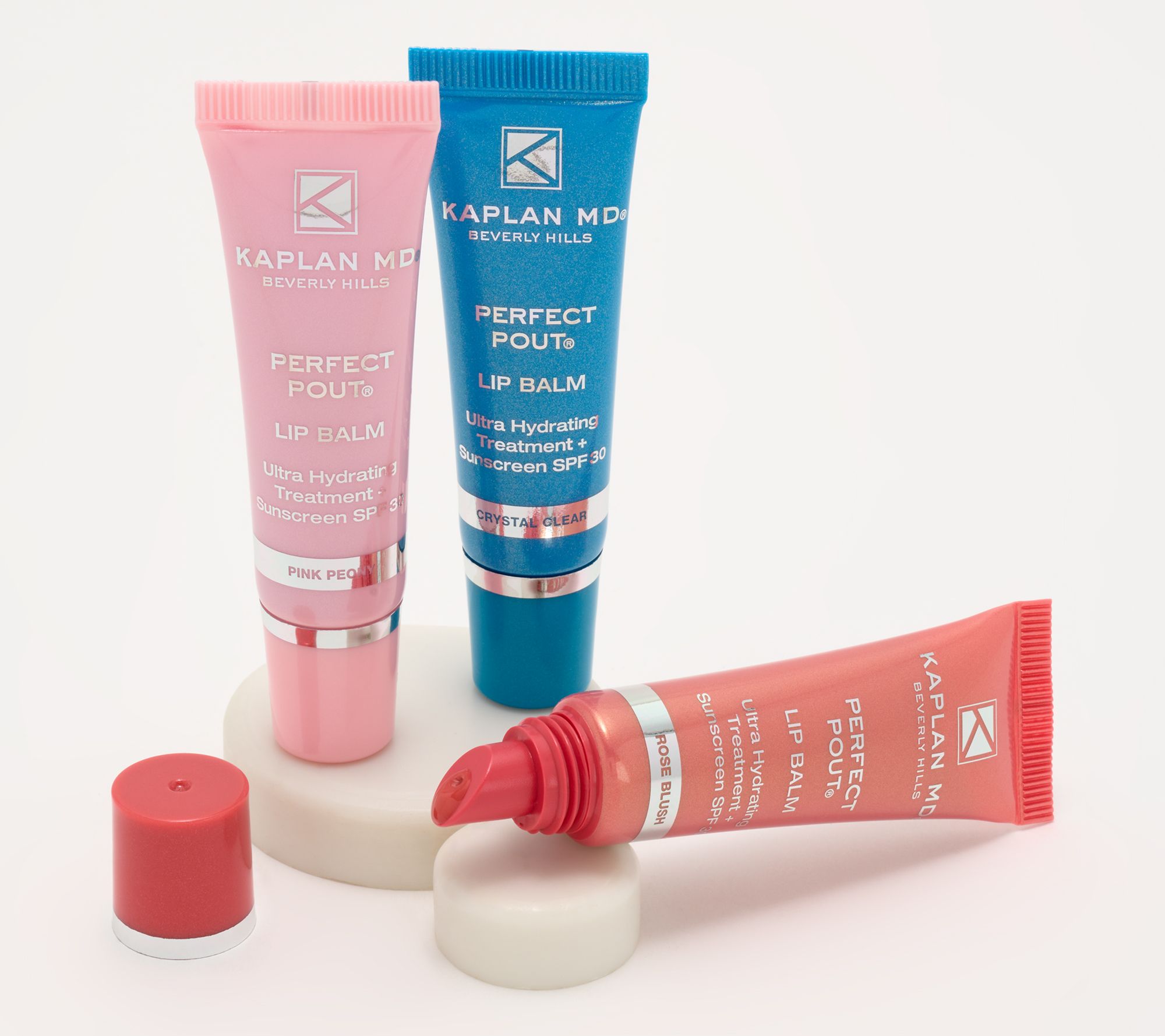 This KAPLAN MD Perfect Pout Lip Balm trio helps to plump the look of skin temporarily, moisturizes lips, diminishes the look of fine lines and wrinkles, and brightens the look of skin. Not sticky or tacky, this hydrating crystal-clear formulation helps protect delicate lips with SPF 30 and can be used alone or as a lip topper. Formulated with hyaluronic filling spheres, 22 certified organic extracts, and maxi lip peptide, it also delivers SPF 30 protection to the delicate lip area.
