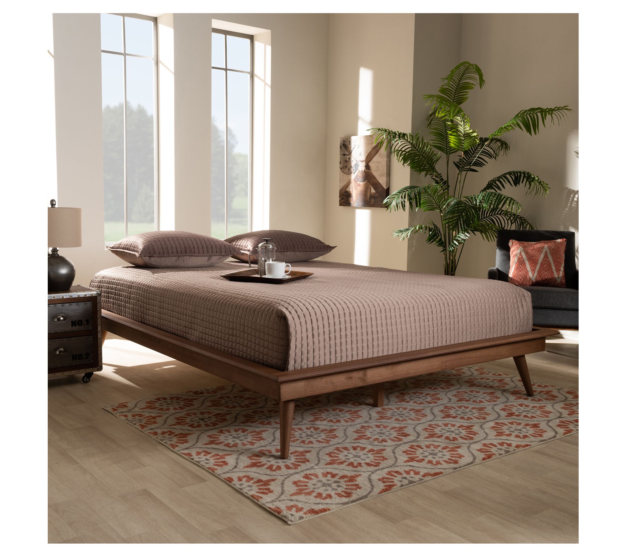 Clean lines and angled legs give this Karine platform bed plenty of mid-century charm while maintaining a minimalist aesthetic. From Baxton Studio.