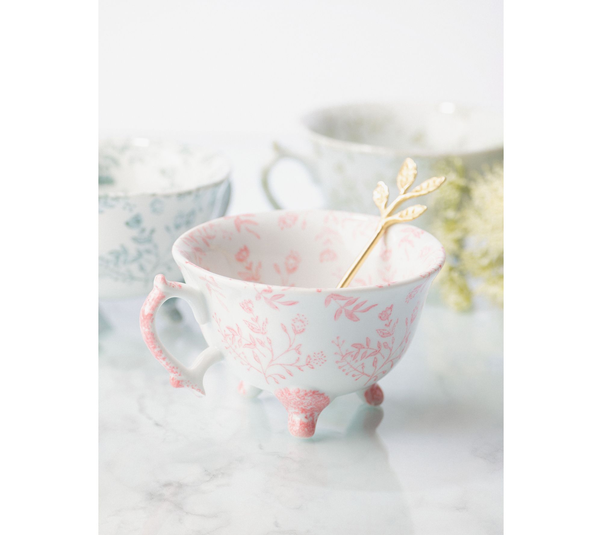 Morning routines and cozy evenings feel more inviting when sipping your favorite tea or coffee from this charming stoneware cup. The whimsical hand-painted design adds a pop of personality to your table setting -- whether you're relaxing solo or sharing a moment with friends. Decorative enough to display, it's a conversation starter that brings delight to any space. From Karma.