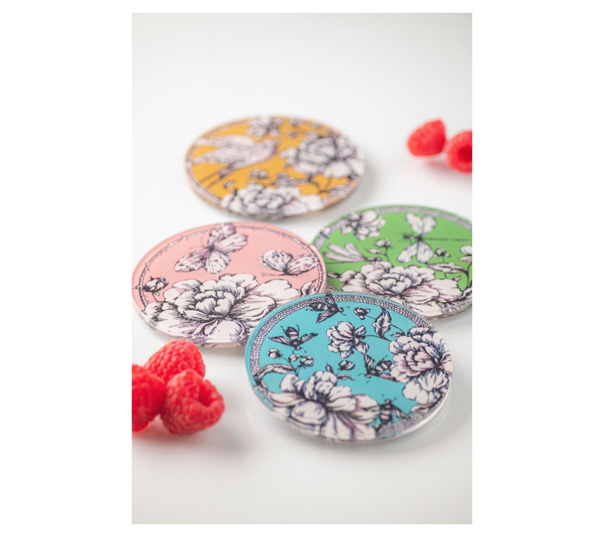 Elevate your entertaining space with these captivating additions for your tabletop. These four acrylic coasters showcase whimsical designs that not only protect your surfaces but also add a playful charm to your home decor. Perfect for gatherings or quiet evenings, they easily blend practicality with style, ensuring your guests are impressed while your furniture stays pristine. From Karma.