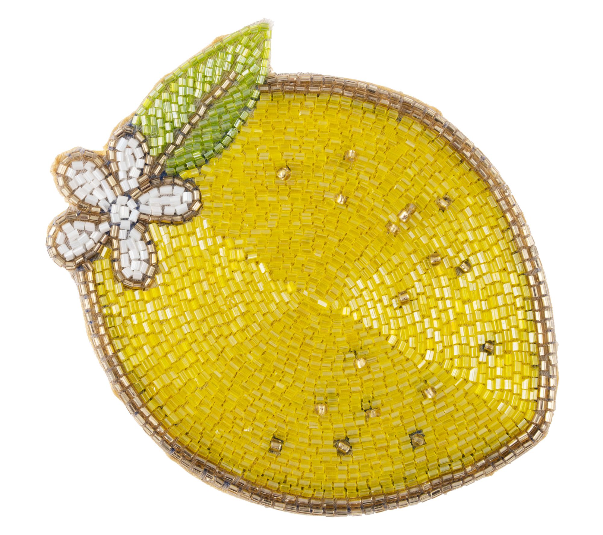 Add a touch of coastal charm to your tabletops with this set of vibrant beaded coasters. Perfect for hosting a casual brunch or an elegant dinner, these coasters offer both function and flair, ensuring your surfaces stay protected as you indulge. Made from a blend of beads, jute, and satin, they provide a stylish backdrop for your favorite drinks. Whether it's morning coffee or an evening cocktail, let these coasters be a simple yet stunning addition to your home decor. From Karma.