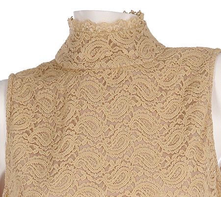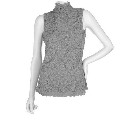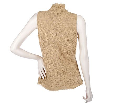 Demure dressing at its best. This mock turtleneck is perfect paired with a suit or worn with your favorite trousers. A nude lining beneath the allover lace overlay offers discreet coverage. From Kathleen Kirkwood's Wardrobe Solutions.