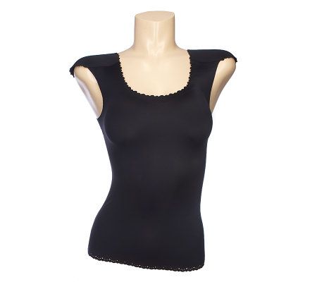 Kathleen Kirkwood brings back the return of the shoulder interest with a sculpted cami. Curved, sculpted, lightweight pads surround and enhance the edge of the shoulder and create an hourglass silhouette. Tank is molded at the bra cup area, for no compression at the chest. COO: China. Care: HWC/ONCBWN/DNWOT/R/LFTD/DNI. Content: Body 80% Tactel/Nylon/20% Lycra/Spandex. Size: XS(2-4), S(6-8), M(10-12), L(14-16), XL(18-20), 1X(18W-20W), 2X(22W-24W). Length:XS=22",S=22-1/2", M=23",L=23-1/2", XL=24", 1X=25", 2X=25-1/2".