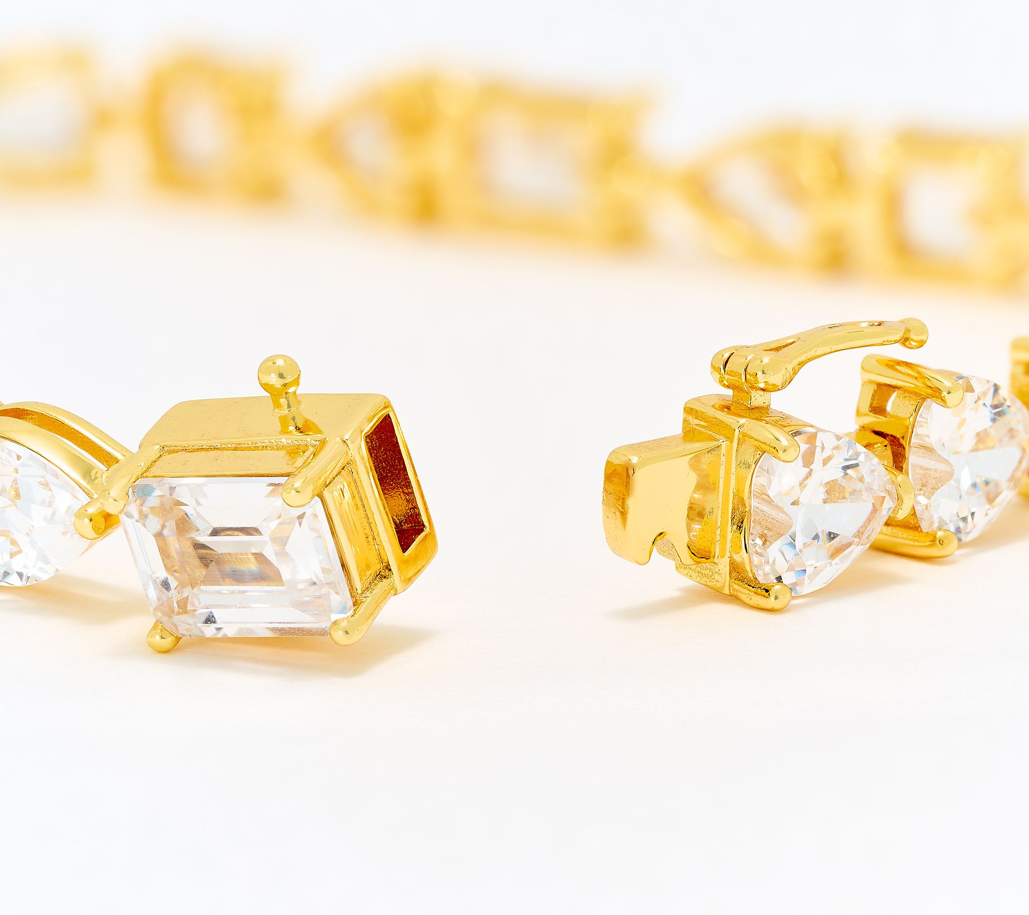 Dress up any gathering or ordinary day with a tennis bracelet that glows with eye-catching sparkle. Featuring multi-shaped simulated diamonds and polished links, this piece is designed for stacking or standing out solo -- making it easy to bring a hint of elegance to your favorite occasions. From Kathy Hilton x Anna Zuckerman.