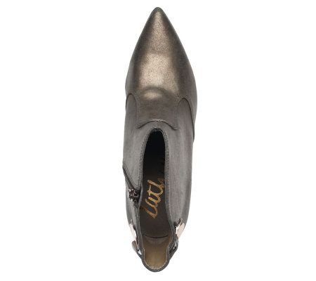 Sometimes, looking fabulous comes down to the right pair of shoes. These ankle booties flaunt your sensational style with a pointed toe, a stacked heel, and lace and hardware details on the back. From Kathy Van Zeeland.