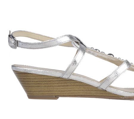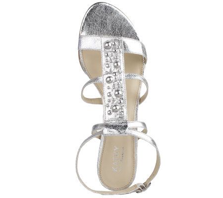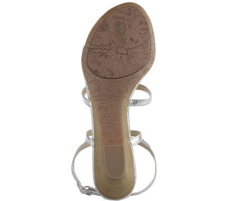 Worn with capris and crop pants, shorts and skirts, these multi-strap sandals are the perfect warm-weather companions. Ornament details are feminine and fun, while the adjustable ankle strap allows for a comfortable fit. From Kathy Van Zeeland.
