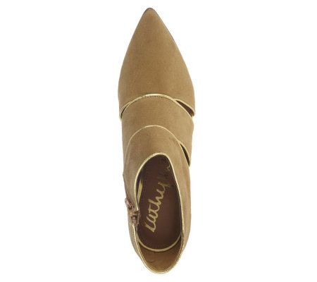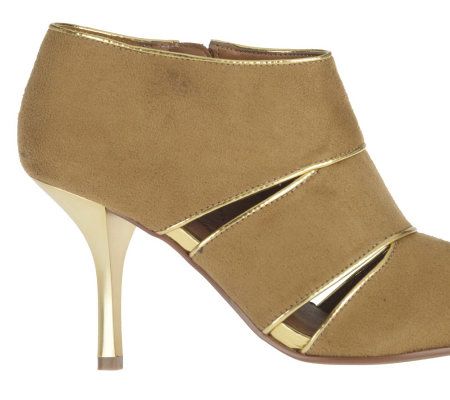 Any way you slice it, these shooties are total cuties. Cutout details make these part shoes, part booties a clear front runner for your next big event. From Kathy Van Zeeland.