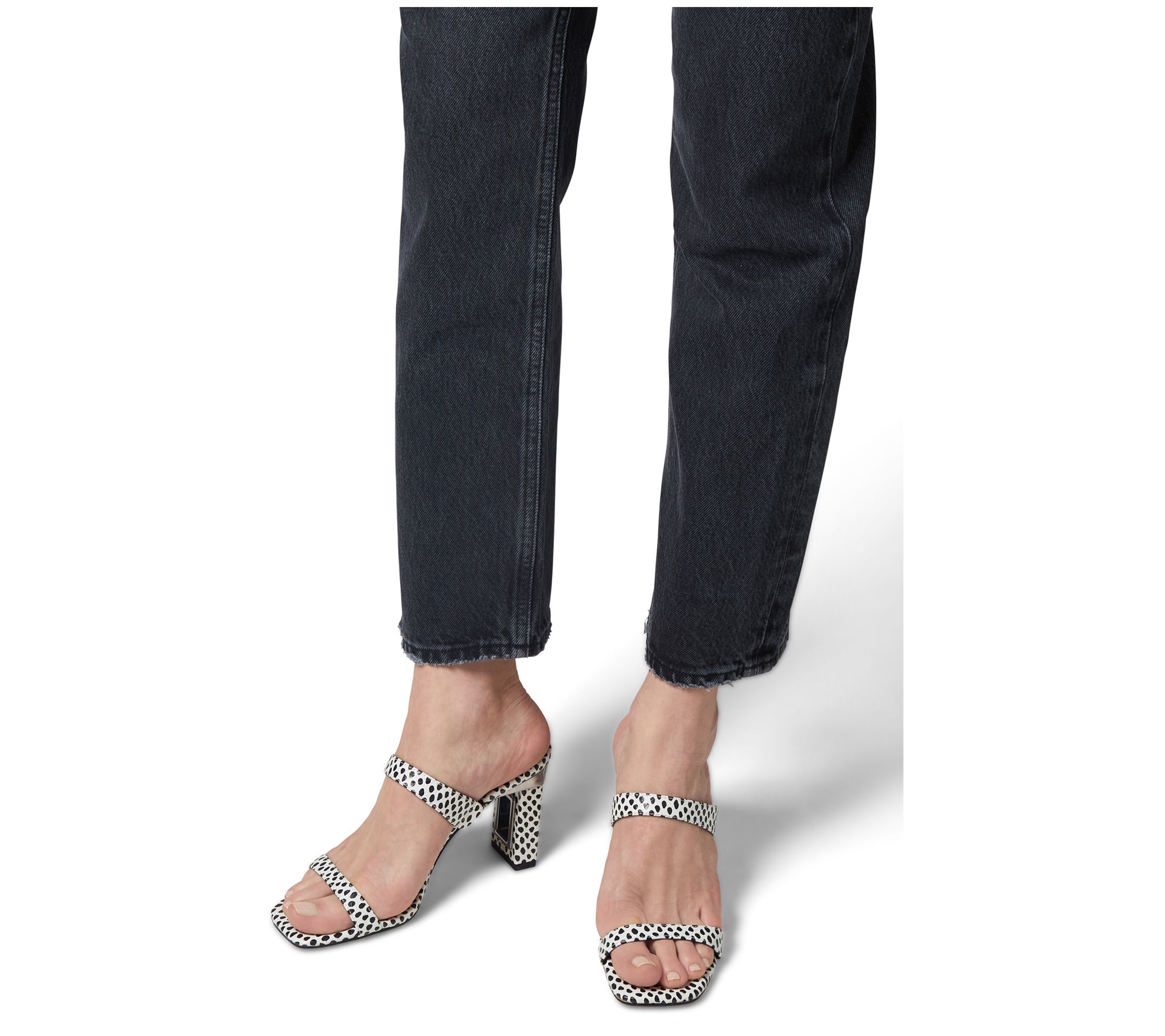 • Slip-on design, dual straps, cutout heel, square toe