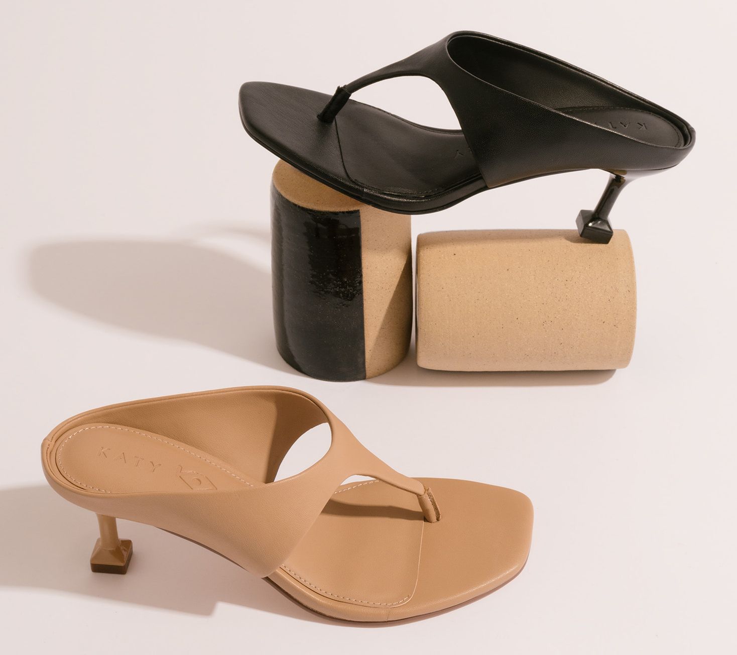 • Slip-on design, sculpted mid-heel, minimal thong strap, square toe