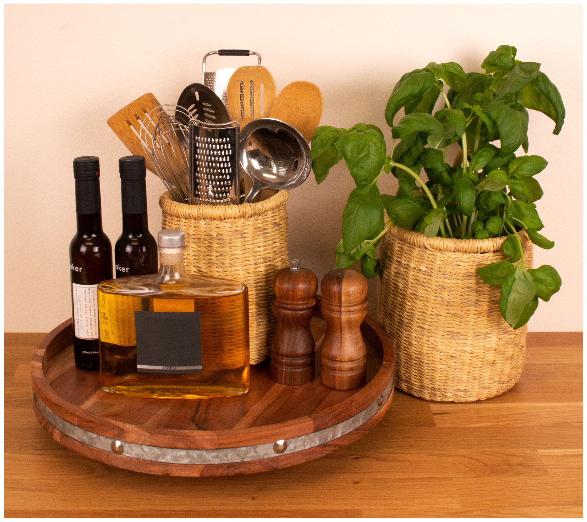 Looking for a clever way to conveniently store your clutter? Scroll no further! This set of two woven baskets works hard as storage or statement pieces. Fill with fruits and veggies in the kitchen or with dried flowers or stems as wall decor (they both have a loop for hanging!). From KAZI.