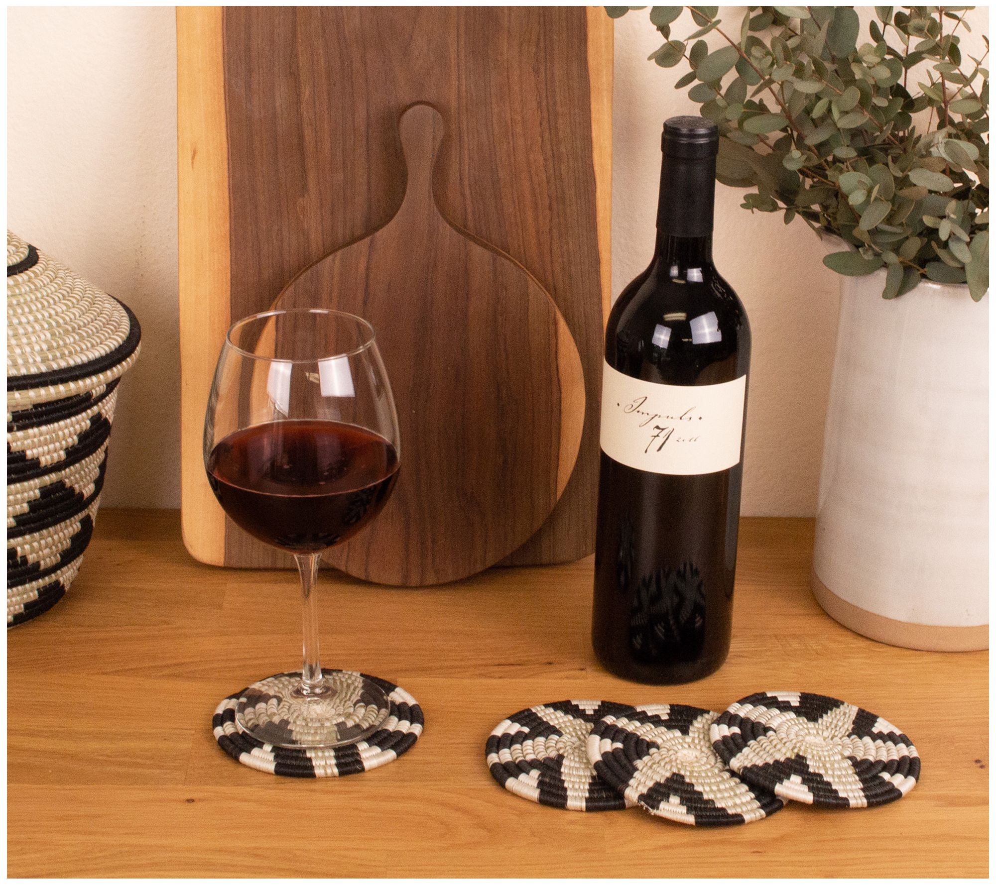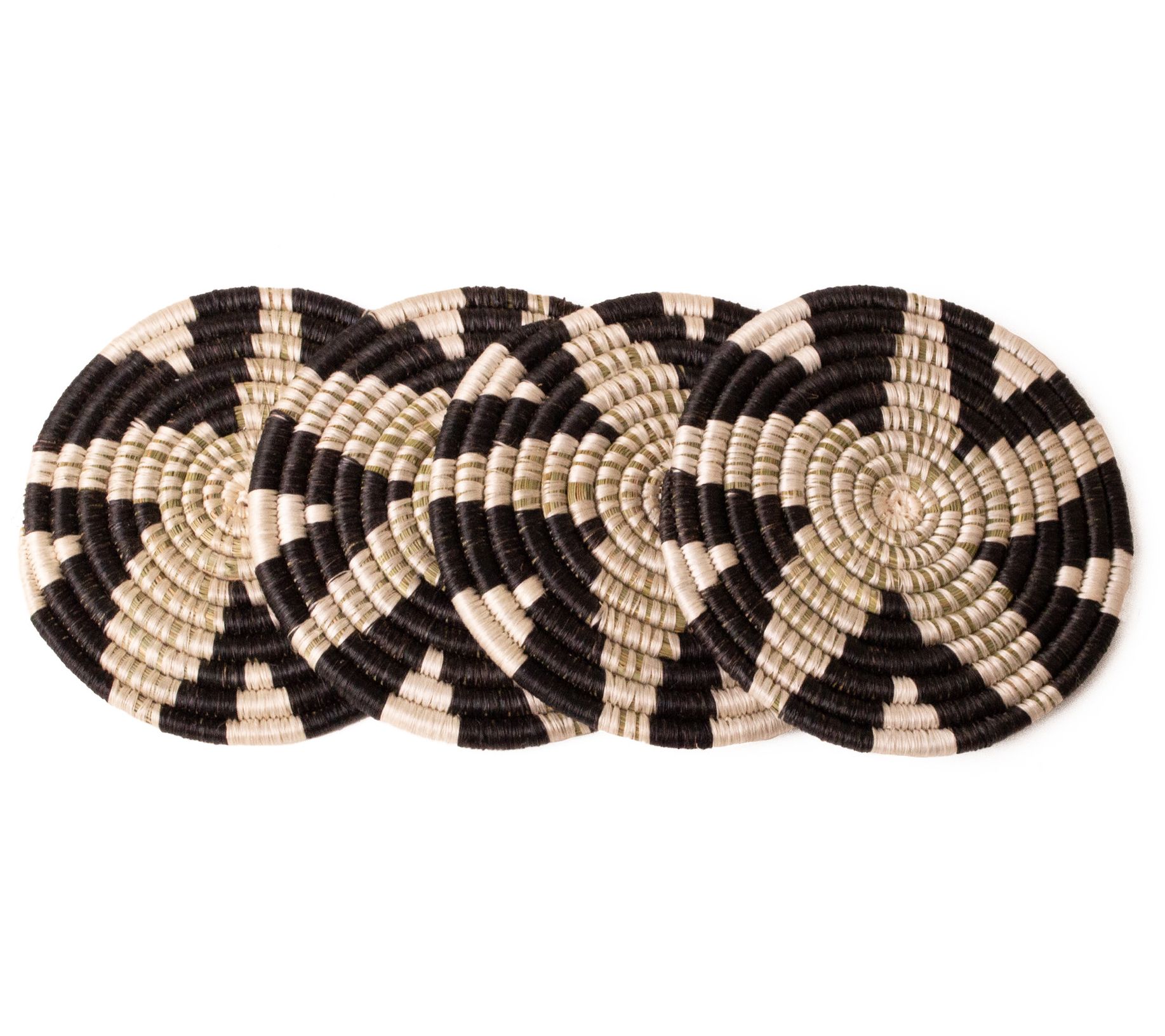 KAZI Hand-Crafted 4-Piece Round Woven Coaster Set
