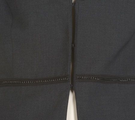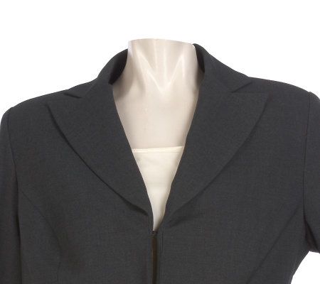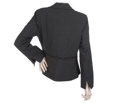 A subtle chain detail lends a contemporary touch to this classic blazer--a must-have for your wardrobe now, and any time of year. Slits on the cuffs and a hook-and-eye front closure are also chic style updates. From Kelly by Clinton Kelly.