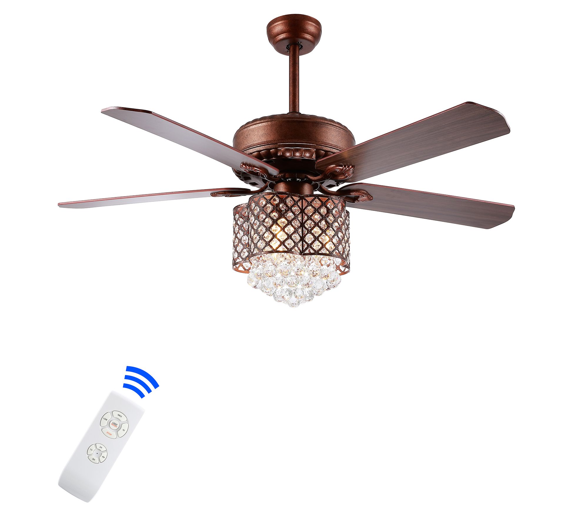 Designed for both glamour and warmth that sparkles throughout room decor, this ceiling light fan shines in its fine details. From Safavieh.