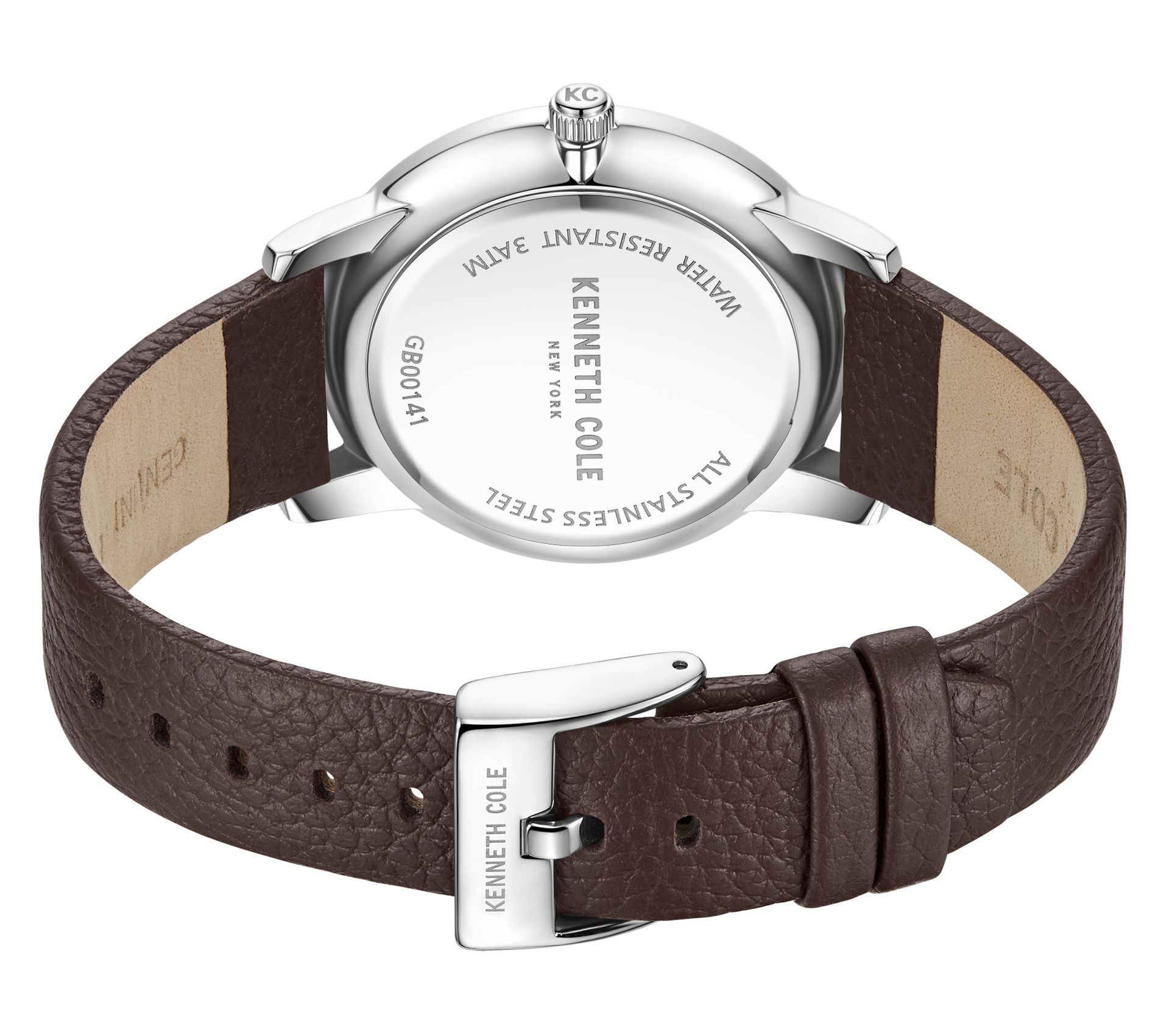 Balancing function and refined style, this timepiece pairs a silvertone dial with goldtone hour markers and a convenient date window -- making it the ideal accessory for work, weekends, or any event in between. The dark brown leather strap delivers a comfortable fit and classic look, while the stainless steel case keeps things polished. From Kenneth Cole New York.