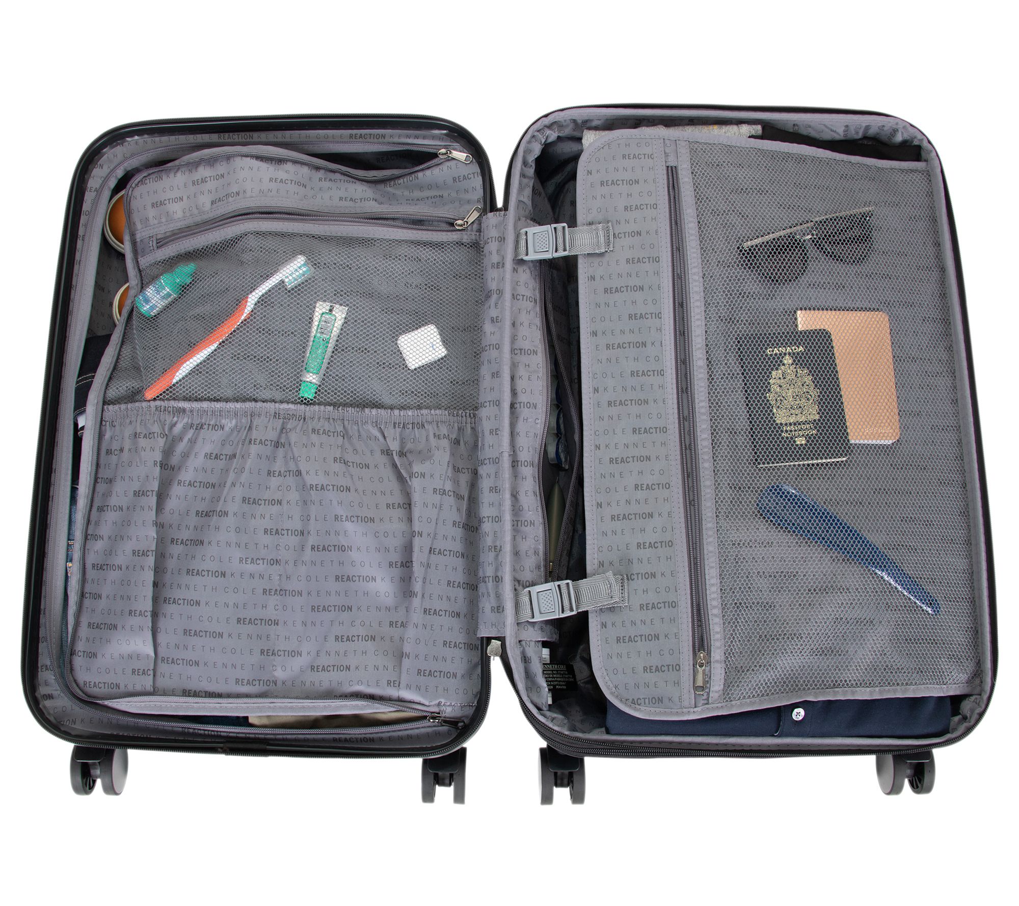 Pack and go in style with this expanding, checked luggage that's rugged, yet lightweight to help meet airline weight restrictions. Its sturdy, hard-side ABS exterior stands up to baggage claim abuse, and grab handles let you lift and maneuver this luggage more easily. Multi-directional, 8-wheel spinners give you smooth movement over rough surfaces, so you're ready to roll at all times. From Kenneth Cole.