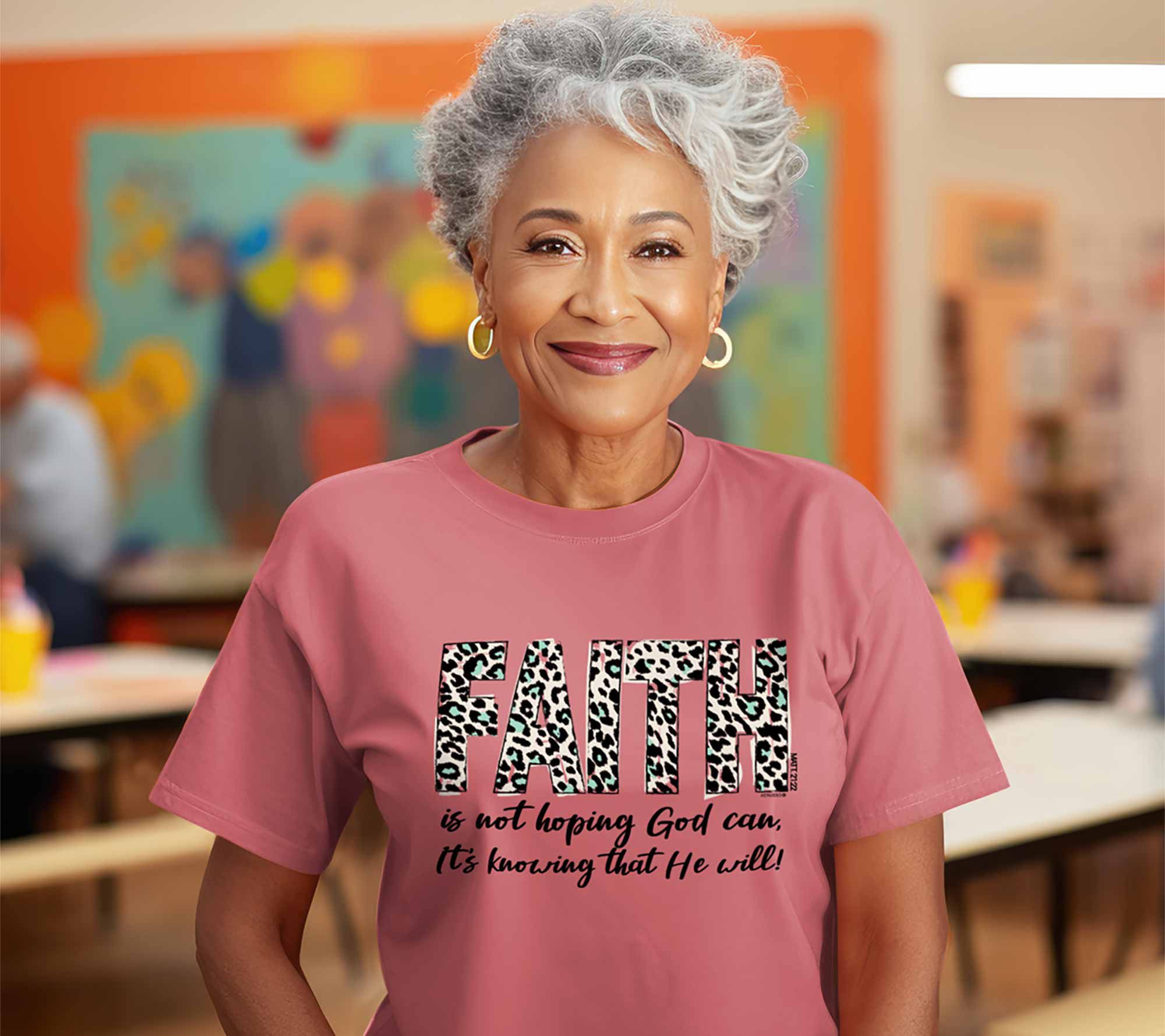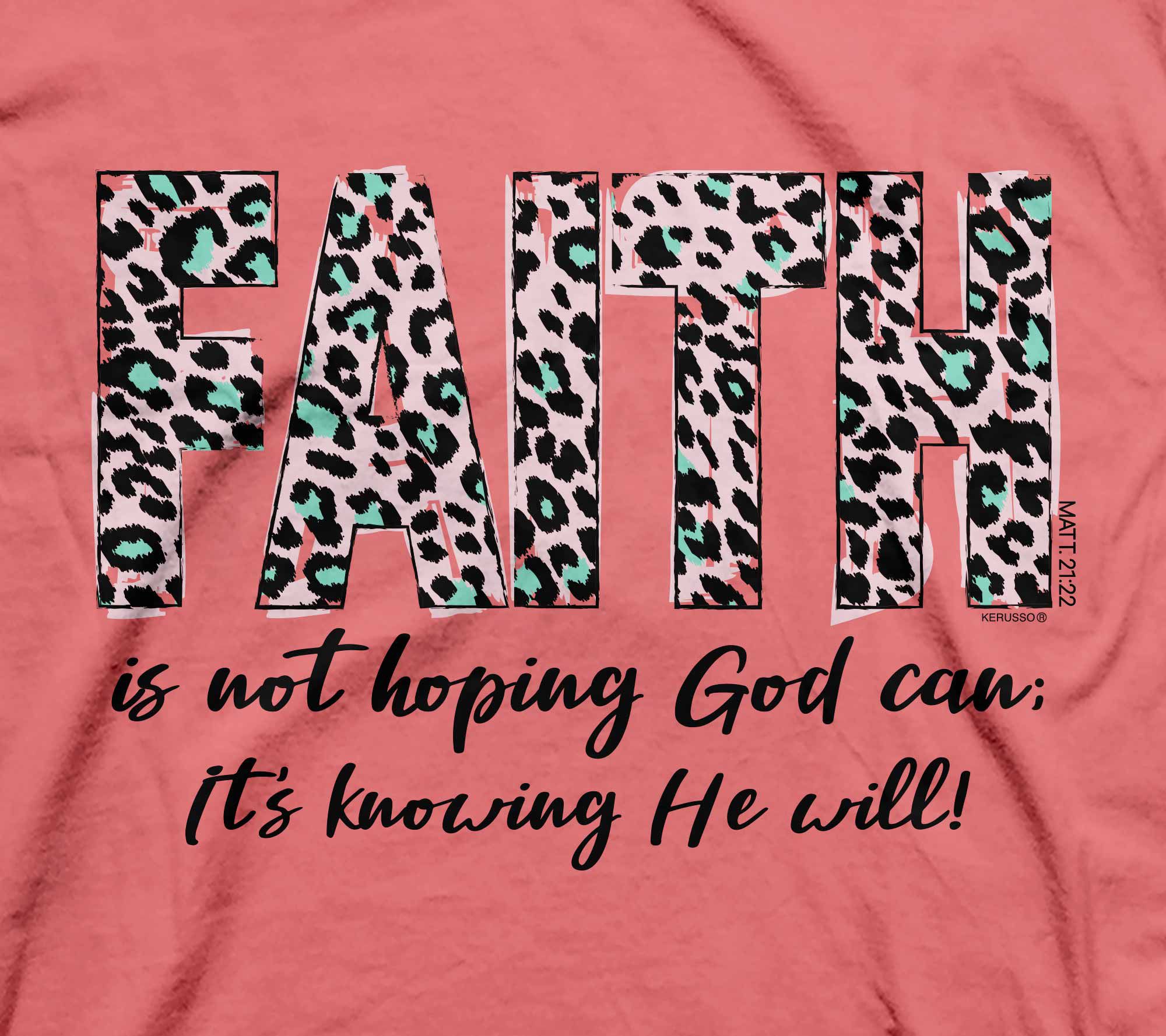 Show off your faith in style with the Kerusso Faith T-shirt in leopard. This relaxed-fit tee features a seamless rib-knit collar and short set-in sleeves for all-day comfort. From Kerusso.
