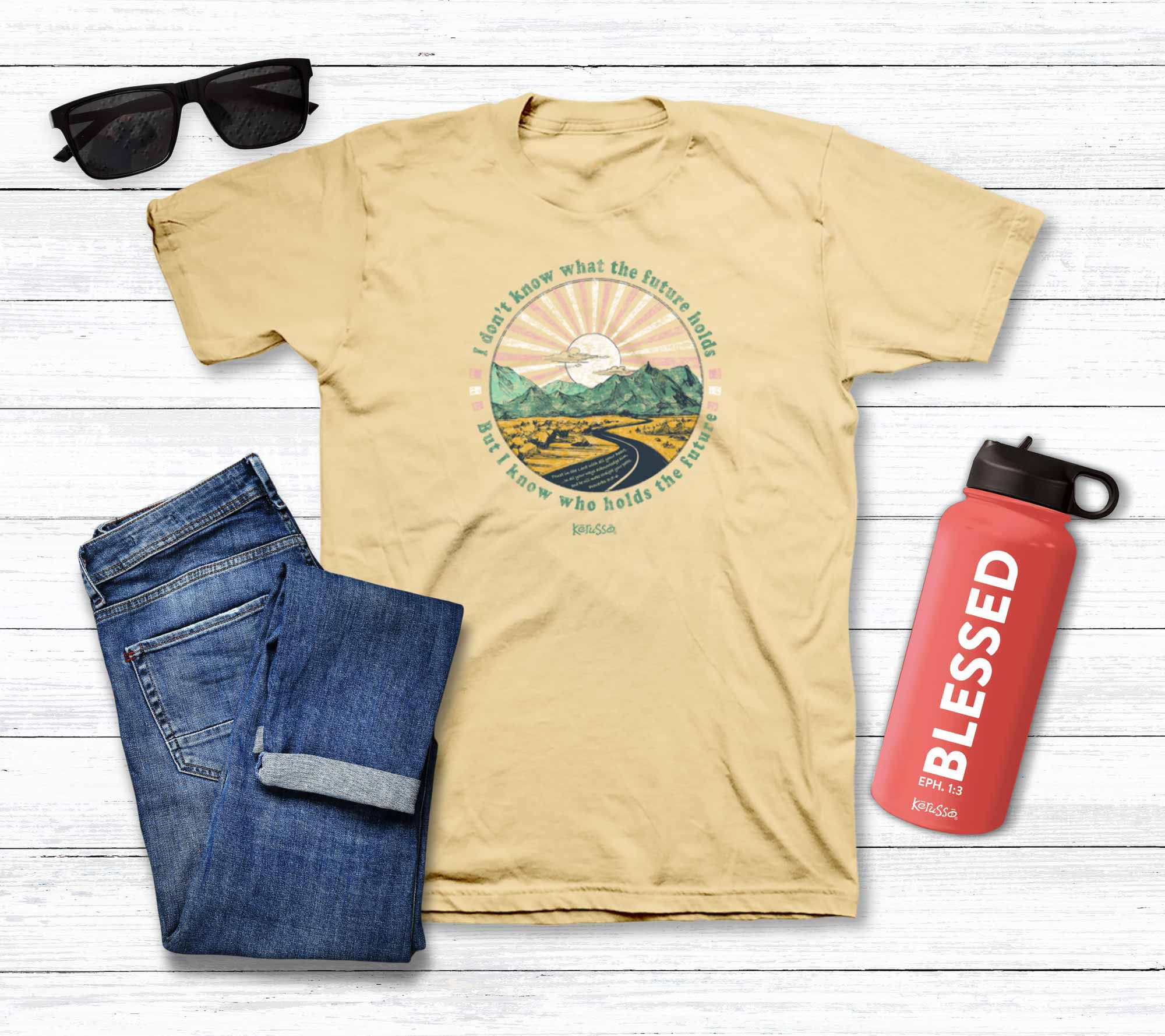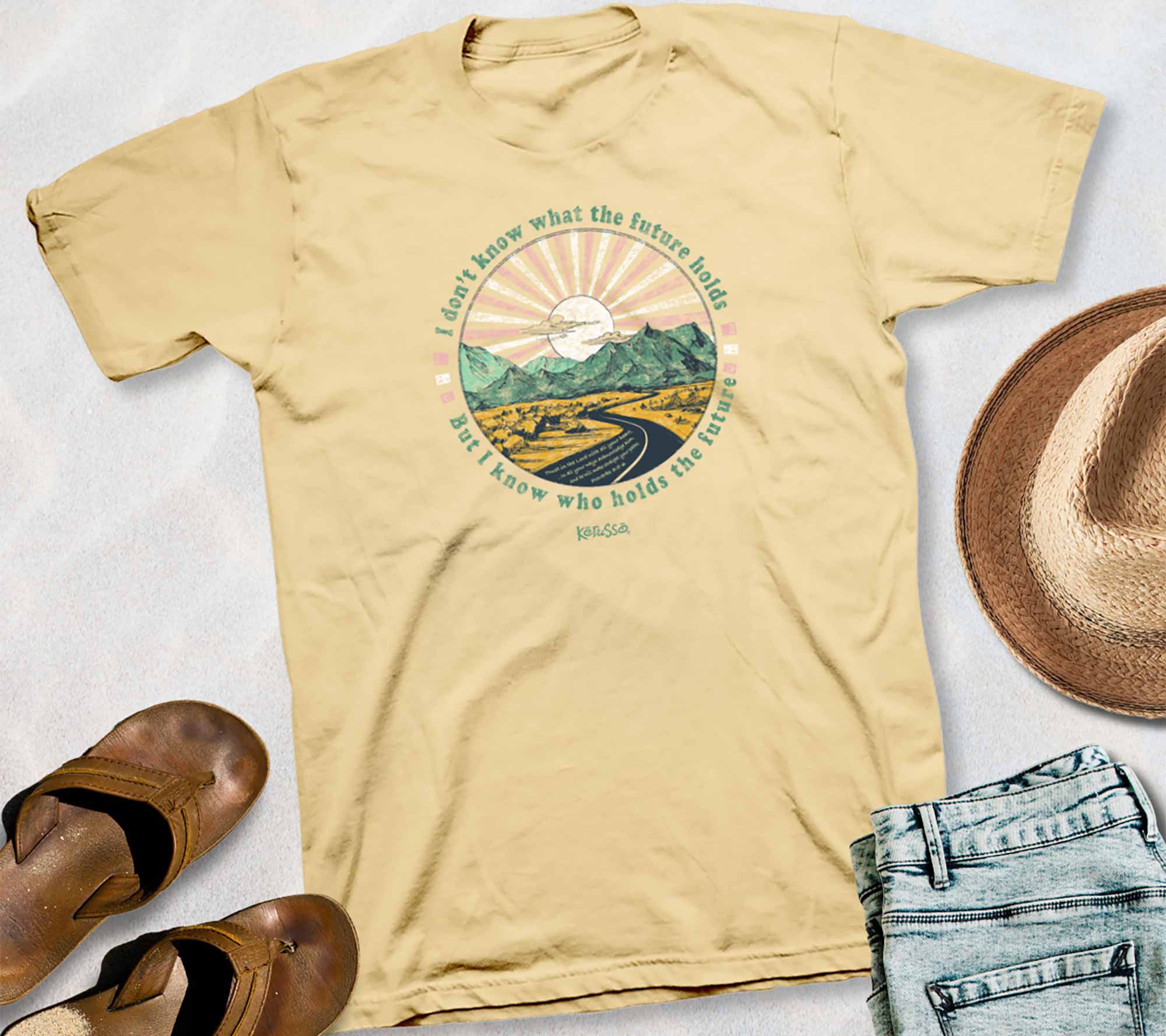 Show your faith in style with the Kerusso adult T-shirt. Featuring a vibrant "Future Sunrise" graphic, this tee is perfect for casual days and uplifting moments. From Kerusso.