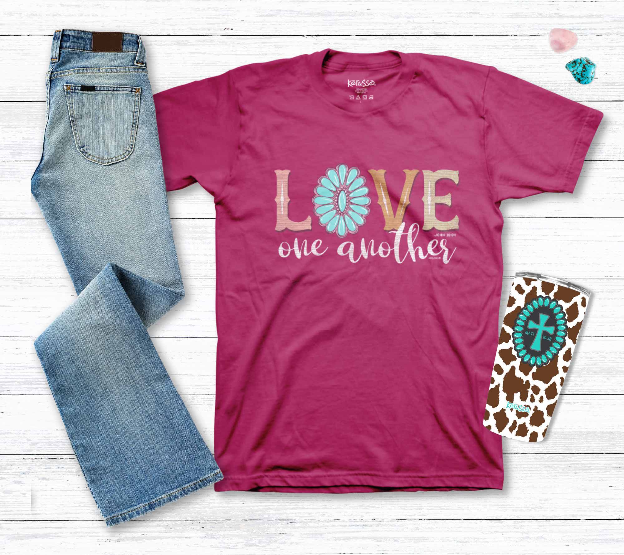 Share the love with the Kerusso "Love One Another" T-shirt, ideal for spreading positivity and kindness wherever you go. From Kerusso.