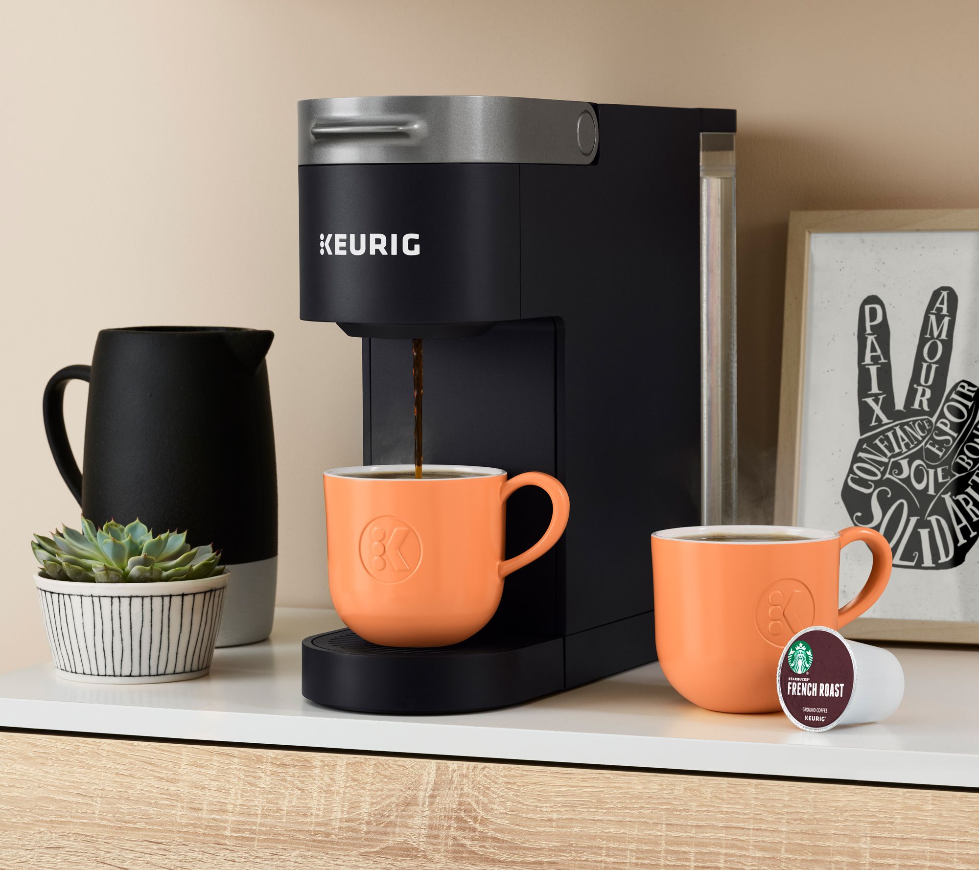 Enjoy great taste -- in a small space! At just 5" wide, the Keurig K-Slim single serve brewer fits neatly on your countertop, work desk, or dorm space, but still brews big, bold flavor!