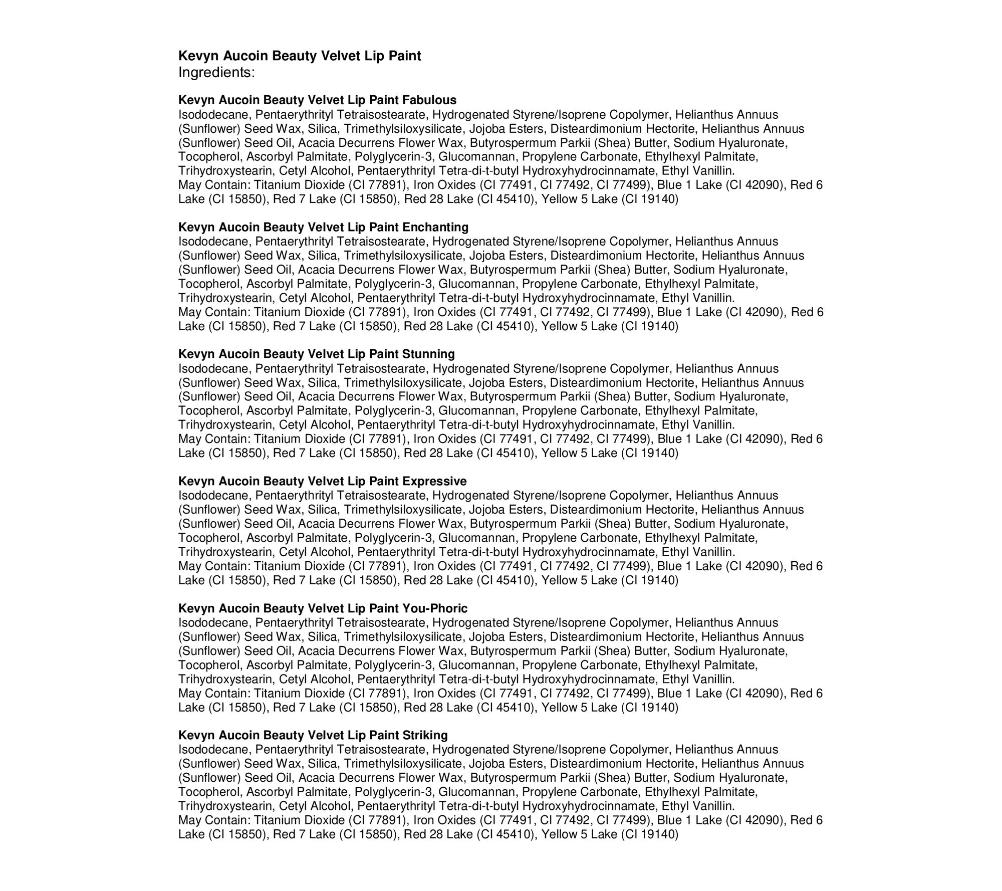 From Kevyn Aucoin Beauty, Velvet Lip Paint is that all-day matte lip coverage you've been waiting for. Its weightless formula glides on like a creamy gloss, culminating in a long-lasting, hydrating, and sumptuous velvet-matte finish. It delivers moisture for smoother-looking lips. The all-day pigments of the velvet lip product, combined with nourishing emollients, provide a truly lavish lip indulgence and a luxurious finish. Whether you use it alone or layer it over a lip liner, you'll love the intensity and longevity of this exceptional lip makeup.