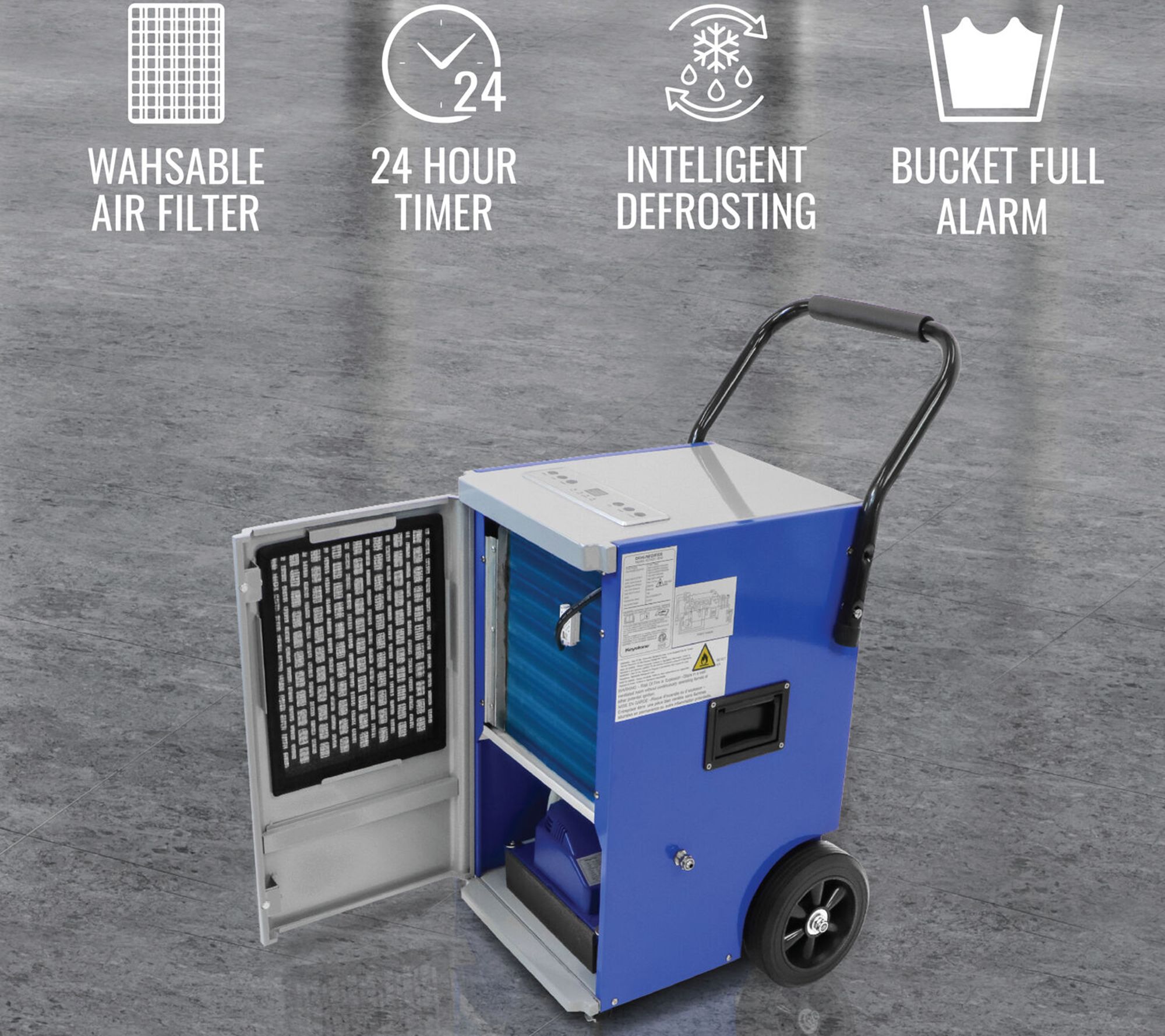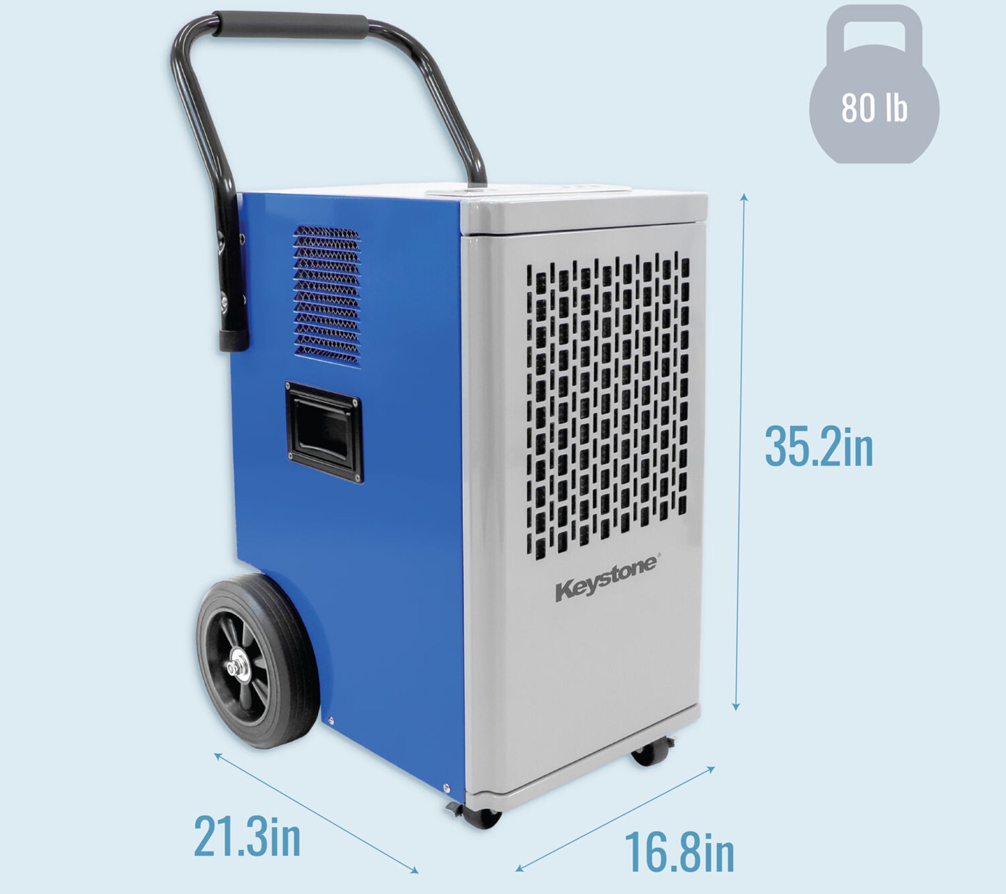 Keep your large spaces free from excess moisture with this commercial dehumidifier that features front caster wheels for easy mobility and a washable air filter for convenient maintenance. With multiple humidity settings and a 24-hour timer, maintaining your desired comfort level is effortless. From Keystone.