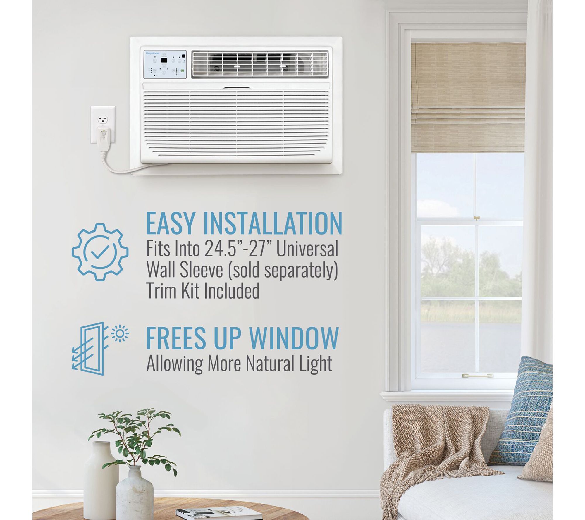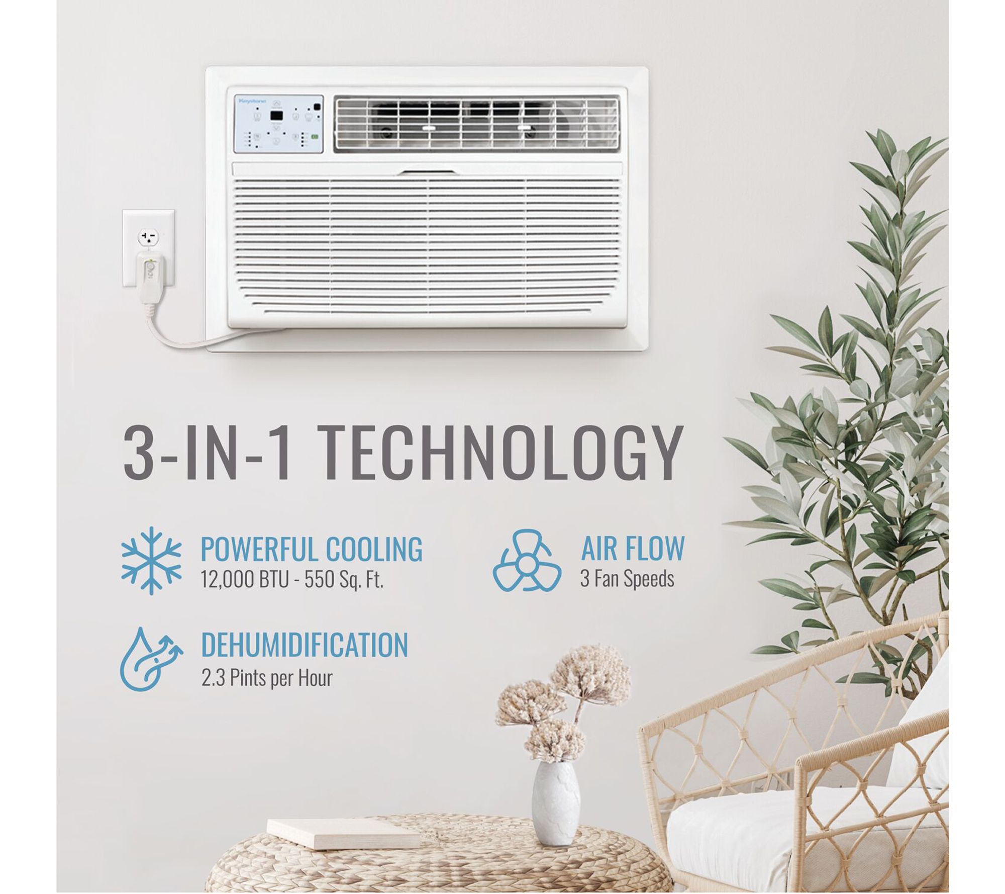 Stay cool and comfortable while you enjoy movie nights or host family dinners with the 12,000 BTU through-the-wall air conditioner. This unit easily fits into medium-sized living rooms or apartments and quietly cools spaces up to 550 square feet. Convenient features like remote-controlled thermostat, programmable timer, and dehumidification help set the perfect indoor environment. From Keystone.