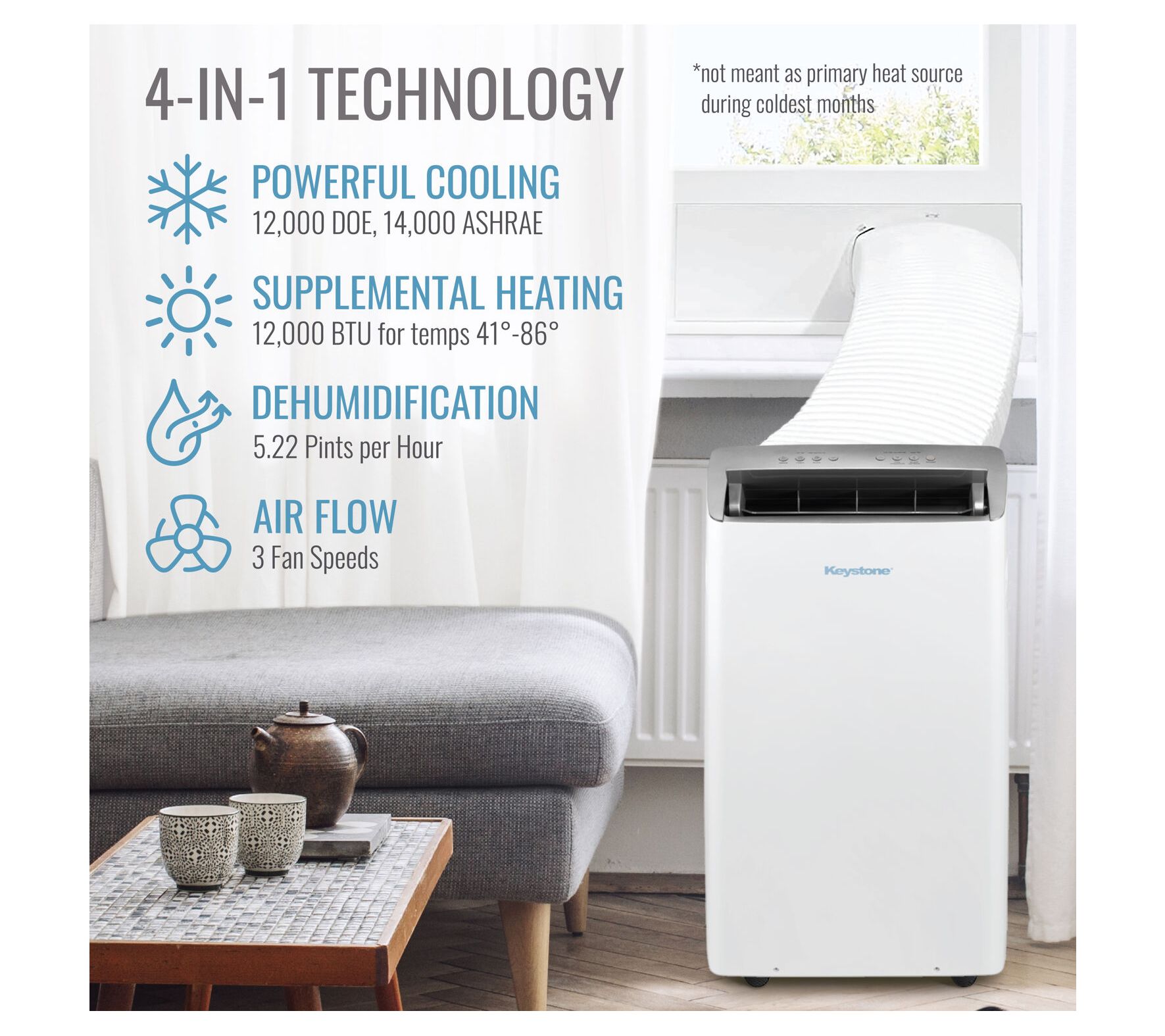 When the afternoon heat becomes stifling, maintaining a cool, comfortable home is effortless with this portable air conditioner and heater. Tackle muggy summer days or unexpected chilly evenings with one powerful unit, designed for spaces where flexibility and convenience matter most. Just roll it to your preferred spot, plug it in, and find instant relief, all year long. From Keystone.