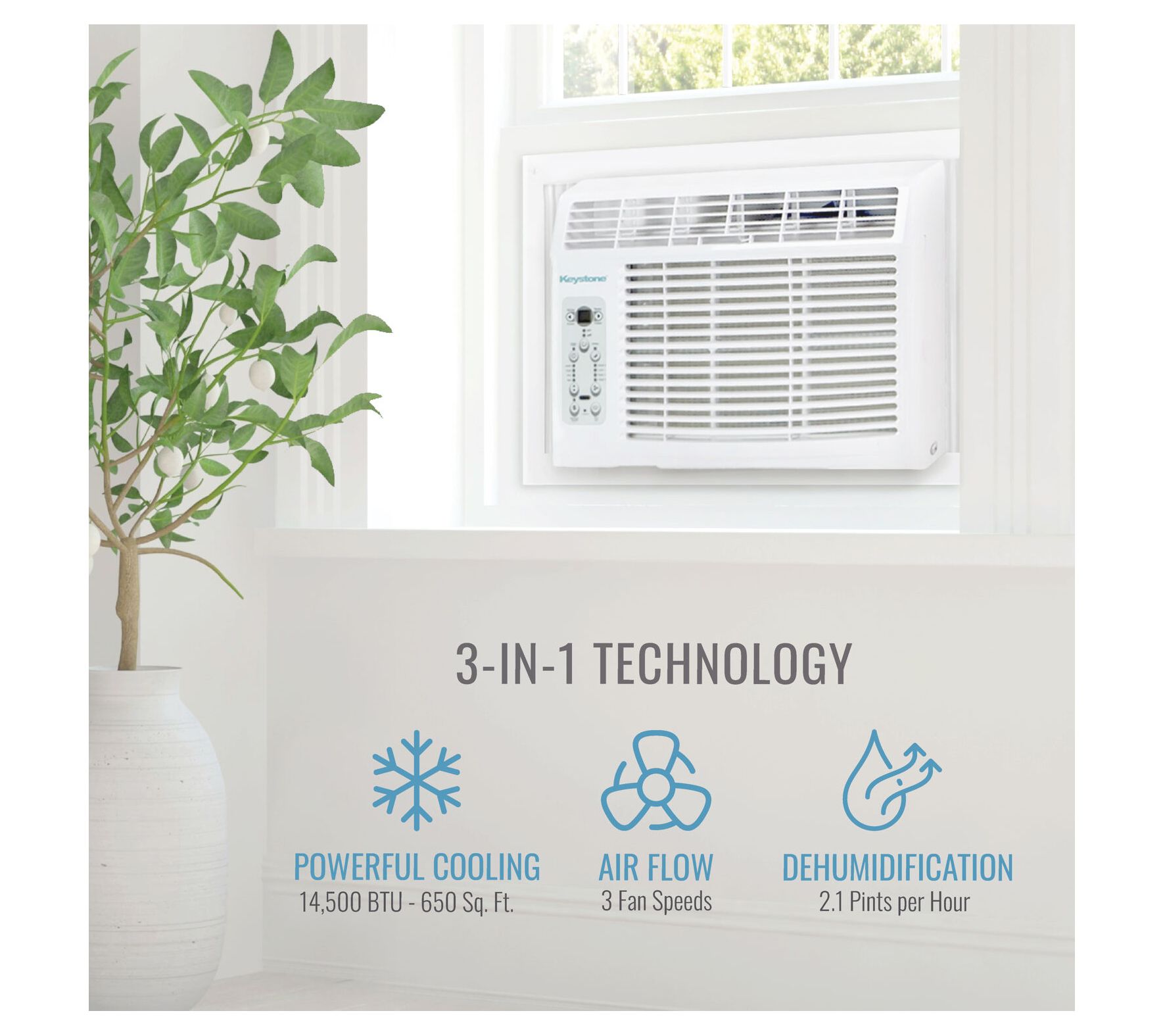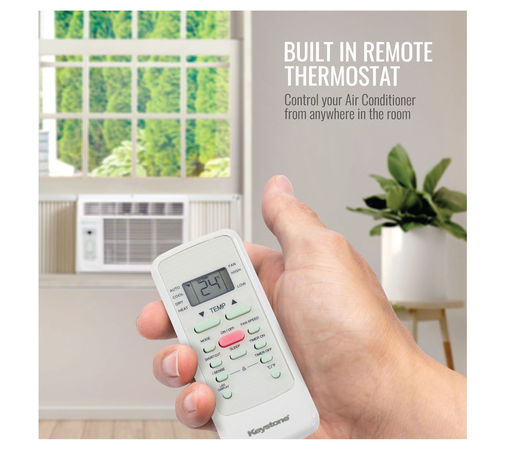 Keep your space comfortably cool with this air conditioner designed for medium-sized rooms. This efficient unit not only cools but also dehumidifies, making it perfect for humid days. With its electronic controls, LED display, and temperature-sensing LCD remote control, adjusting settings is a breeze. From Keystone.