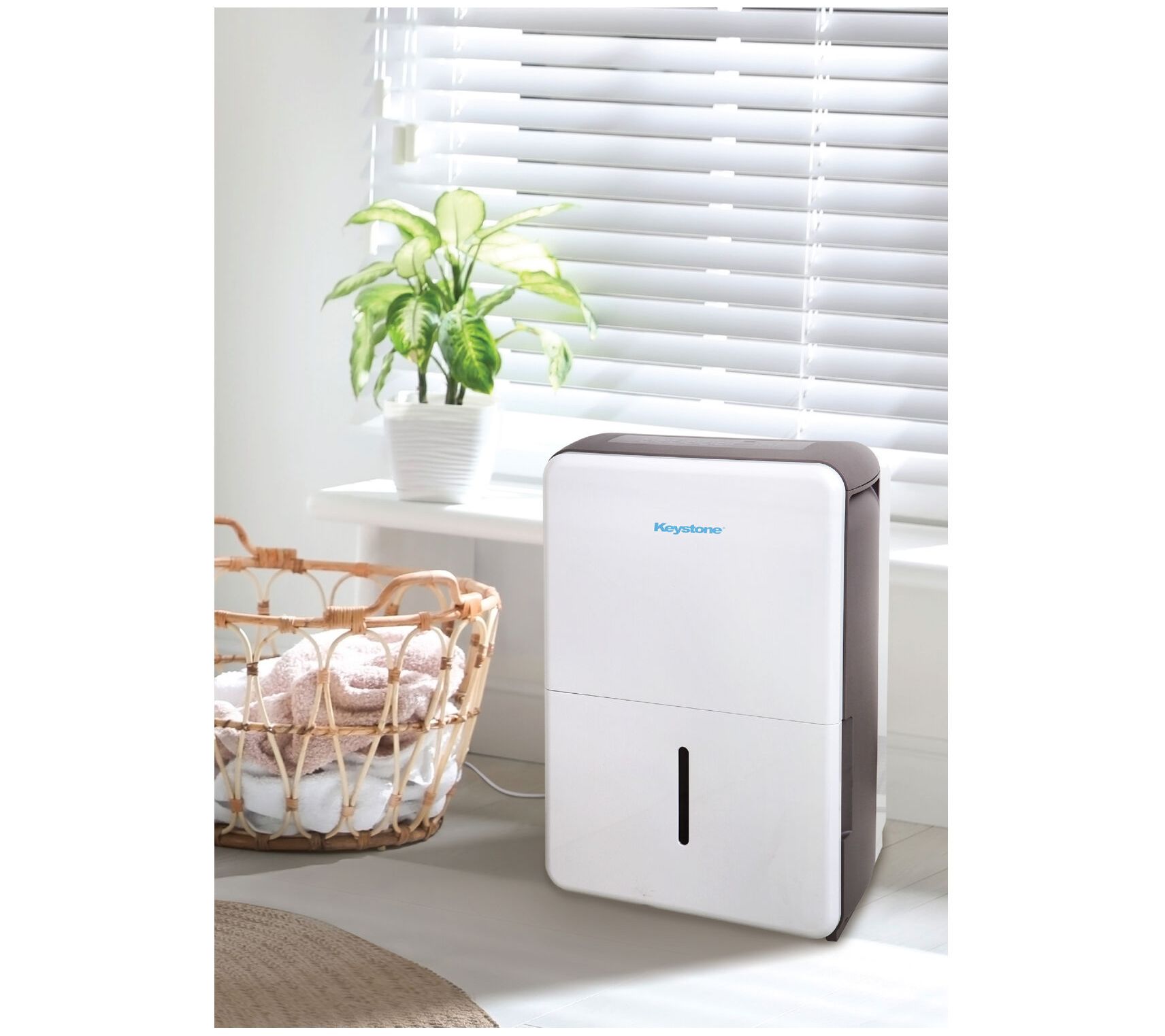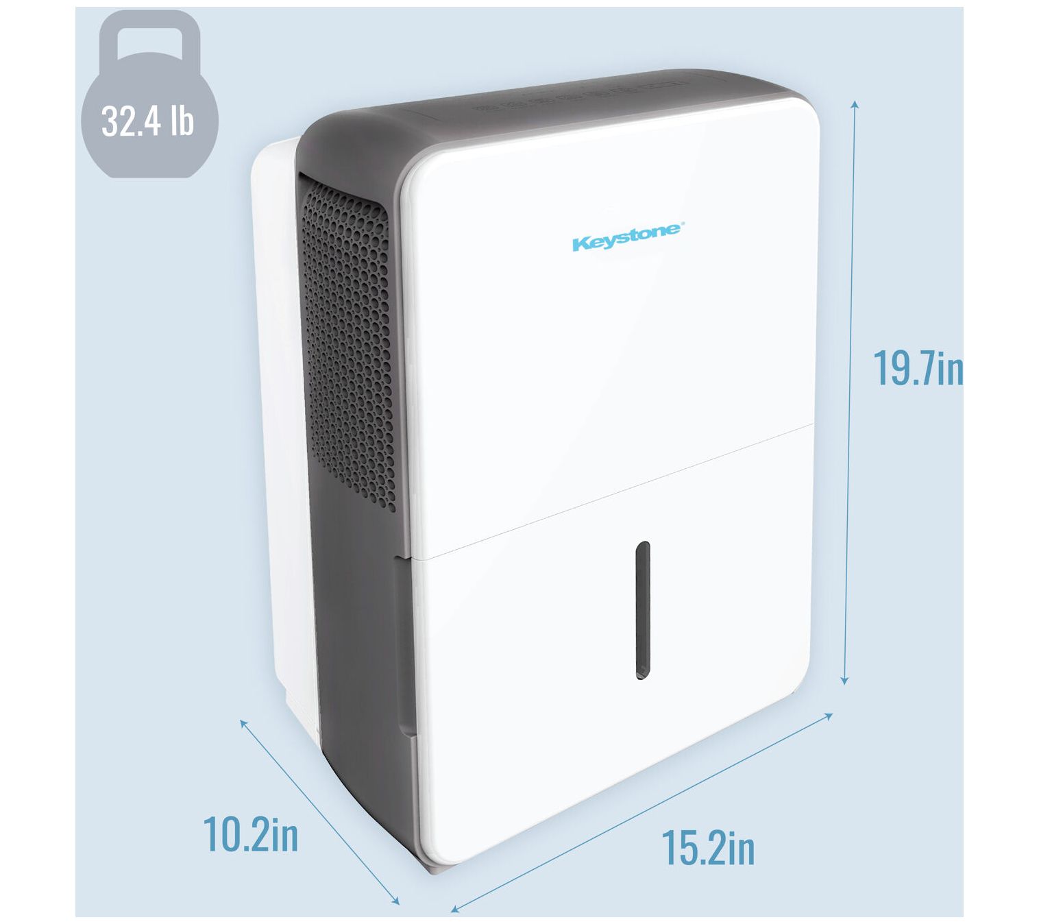 Keystone's 22-pint dehumidifier is your go-to solution for maintaining comfortable humidity levels in rooms up to 1,500 square feet. With its sleek design and easy-to-use electronic controls, this unit can remove up to 22 pints of moisture per day, making it ideal for basements, garages, and living rooms. Enjoy features like a 24-hour timer, auto-defrost, and a convenient full bucket alert to prevent spills. From Keystone.