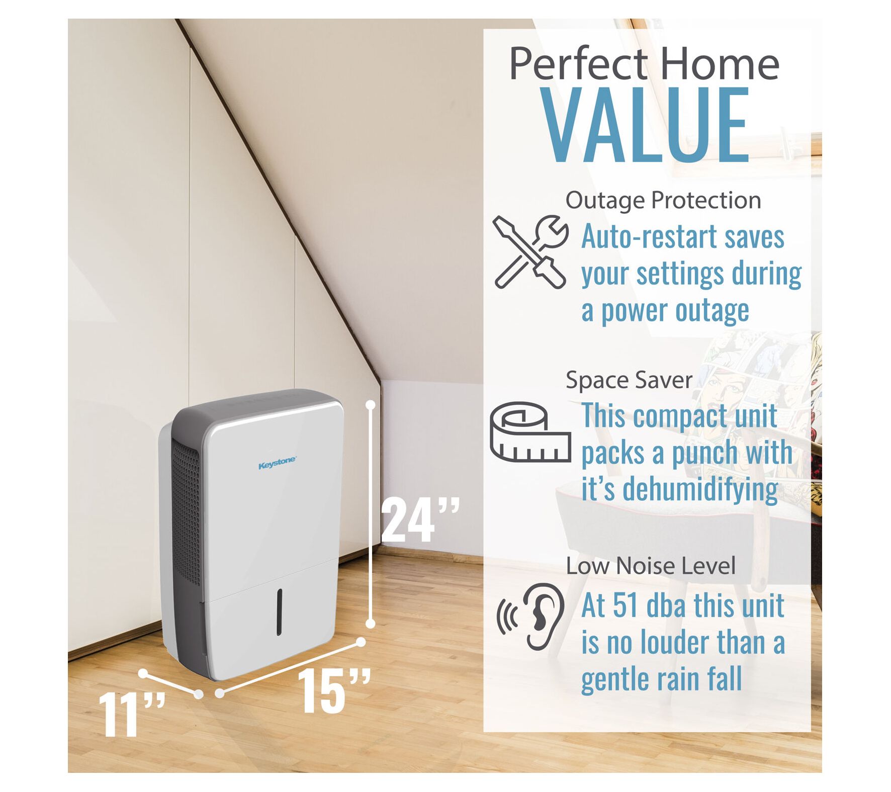 Keep your space comfortably dry with this dehumidifier featuring a built-in pump for easy, continuous upward drainage. This efficient unit is designed to remove up to 50 pints of moisture per day, making it perfect for large spaces including attics, bedrooms, basements, or bathrooms. With electronic controls, LED display, and a 24-hour timer, it offers convenience and flexibility to fit your lifestyle. From Keystone.