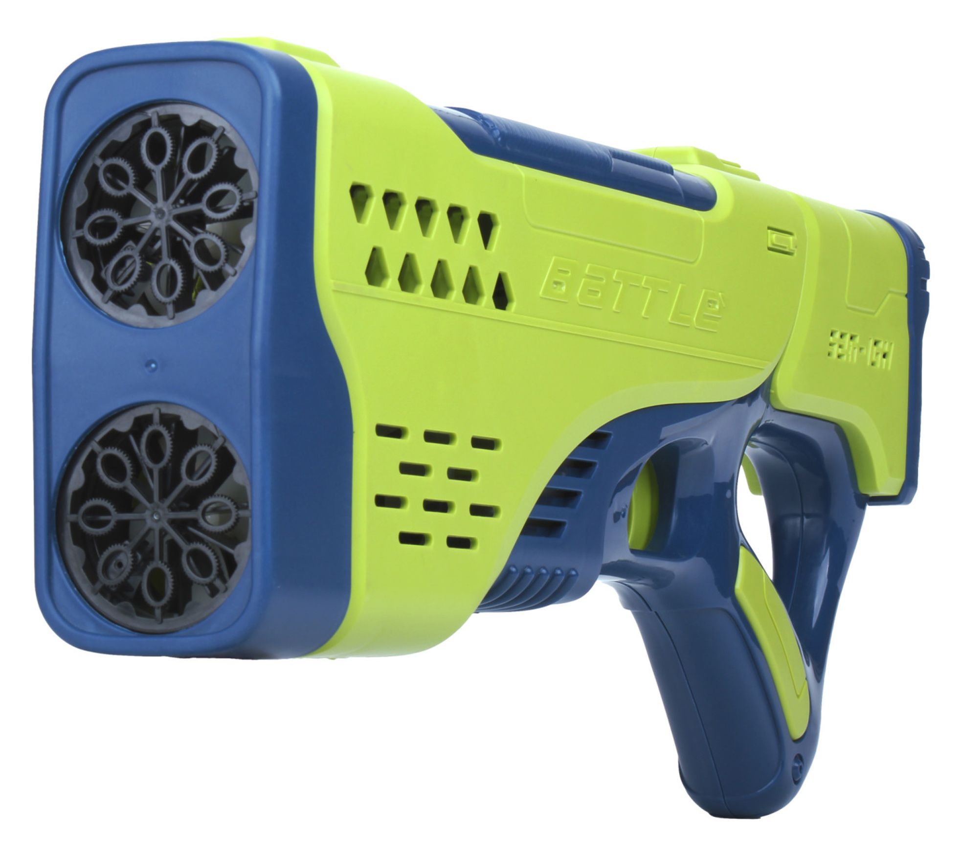 Sunny afternoons in the backyard turn into bubble-filled adventures with this powerhouse blaster, creating thousands of swirling bubbles with each squeeze of the trigger. Dual barrels deliver non-stop streams while built-in LED lights amp up the fun for any occasion -- whether it's birthday parties, family gatherings, or just adding some sparkle to playtime. From Kid Galaxy.