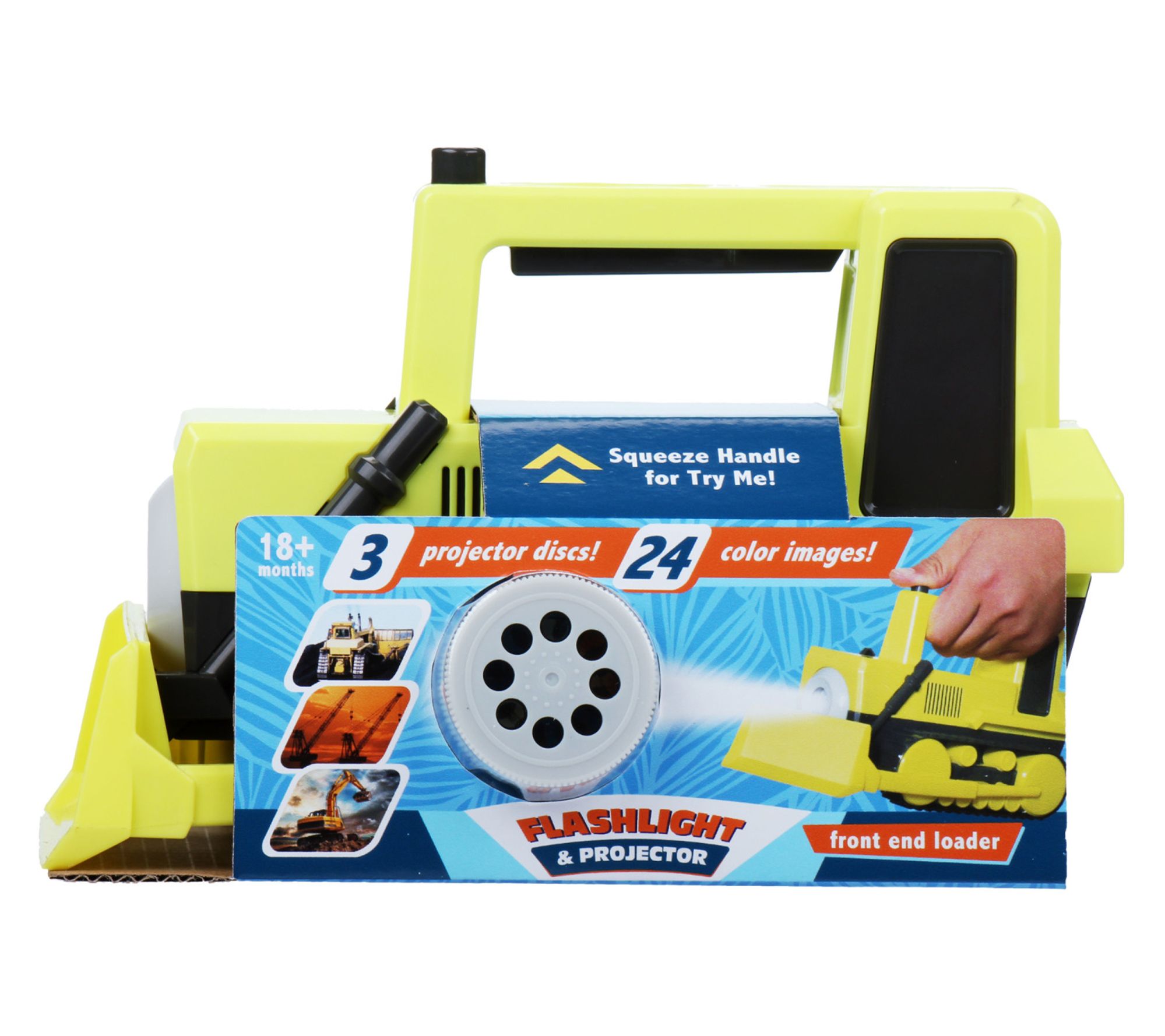 Movie night under the covers or a late evening adventure just got a creative twist with a working flashlight that features construction-themed projection discs. It's fun to watch big trucks light up the ceiling, bringing favorite machines to bedtime stories or backyard camping. Easy for small hands to operate, this interactive light makes any nighttime routine feel special. From Kid Galaxy.