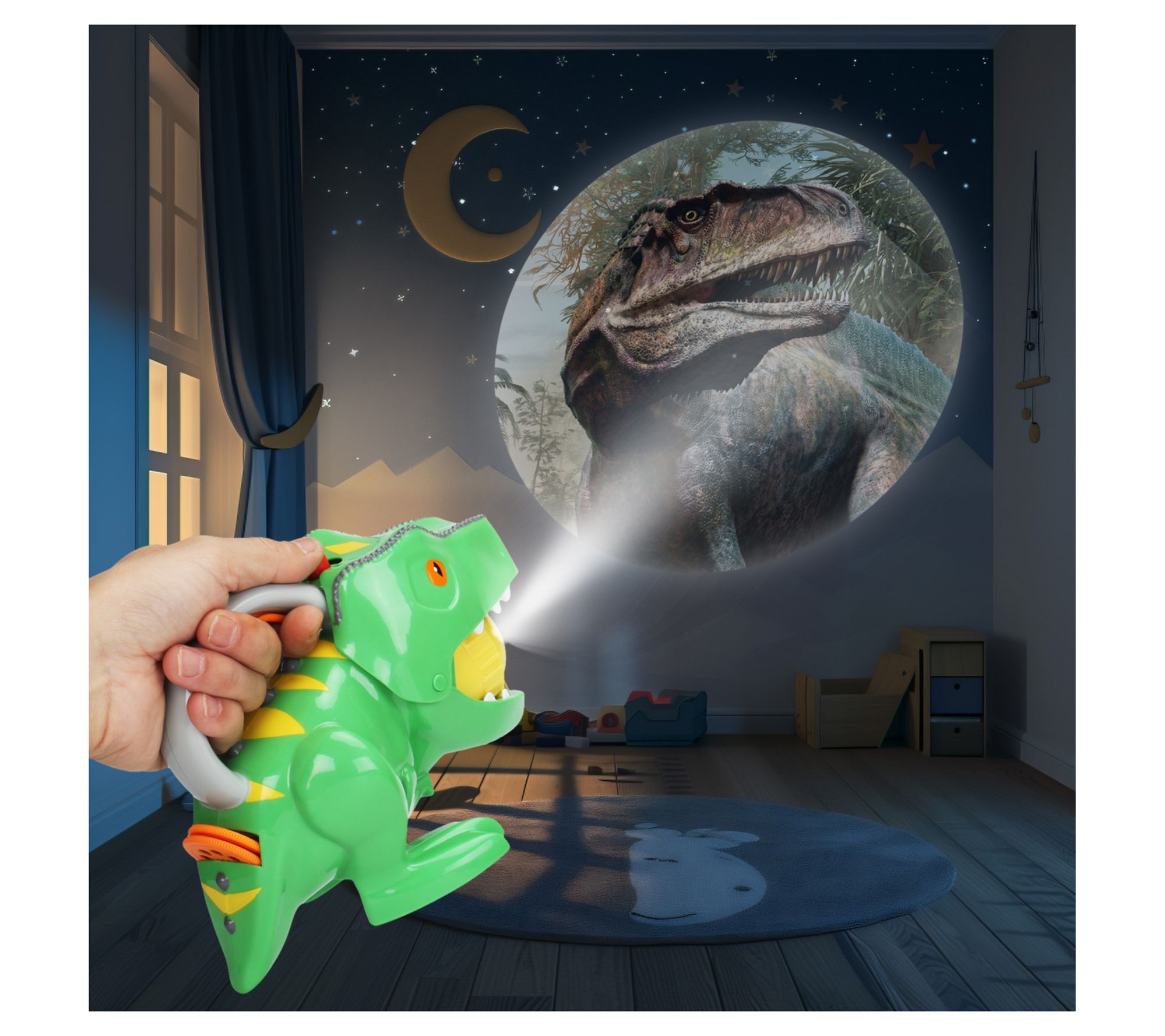 Evenings become an adventure with a flashlight that brings dinosaurs right into your space. It's easy to imagine bedtime stories with a herd of giant friends on the ceiling, or sparking curiosity as different dino scenes fill the walls. With three themed discs and simple operation designed for little hands, this light makes quiet time or playtime both fun and interactive. From Kid Galaxy.