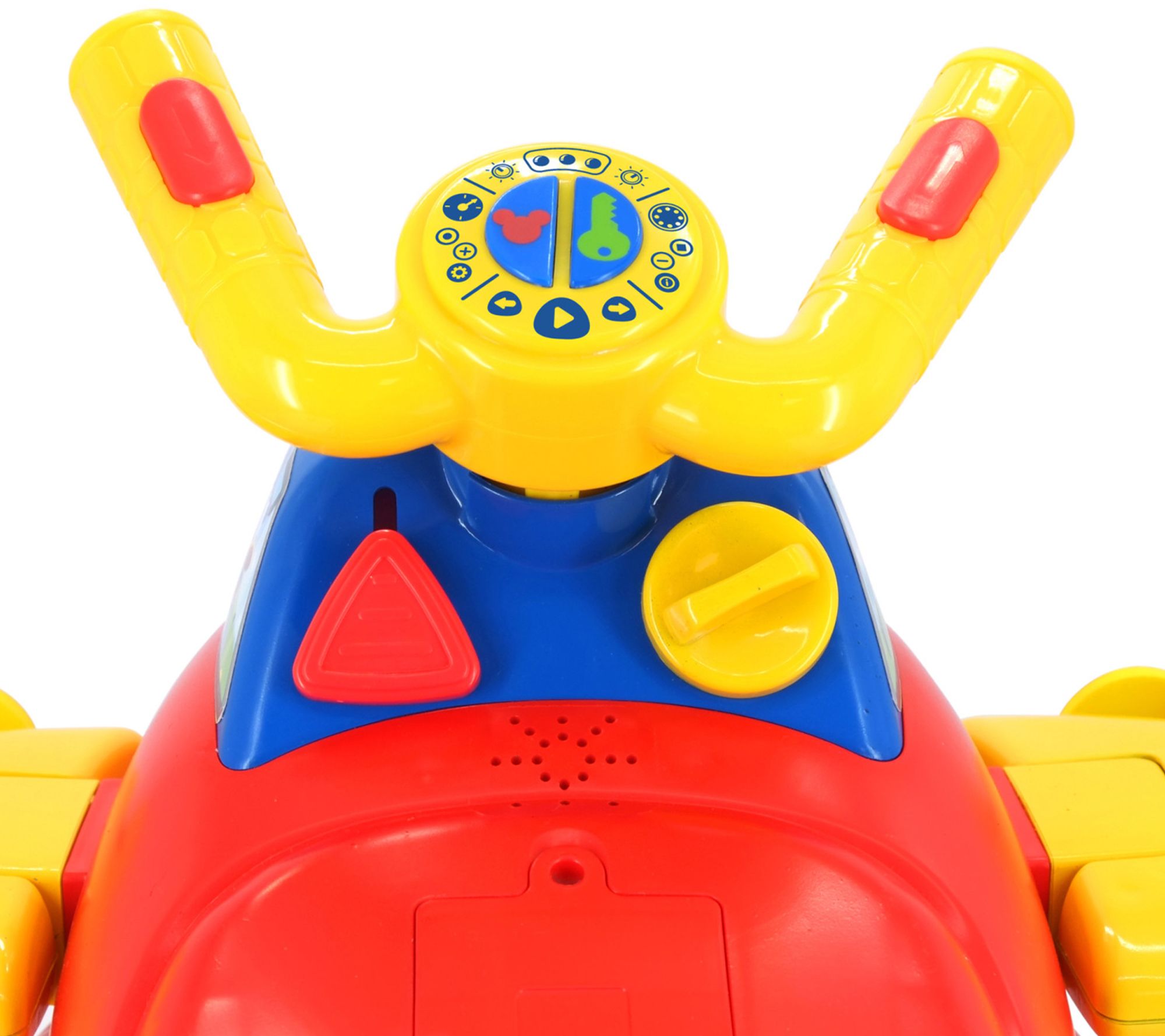 Little pilots can soar through imaginative adventures with this foot-to-floor ride-on plane, featuring Disney character details and interactive activities for playtime on the move. With sturdy construction and engaging features, it's ready to launch smiles while encouraging active fun indoors or out. From Kiddieland.