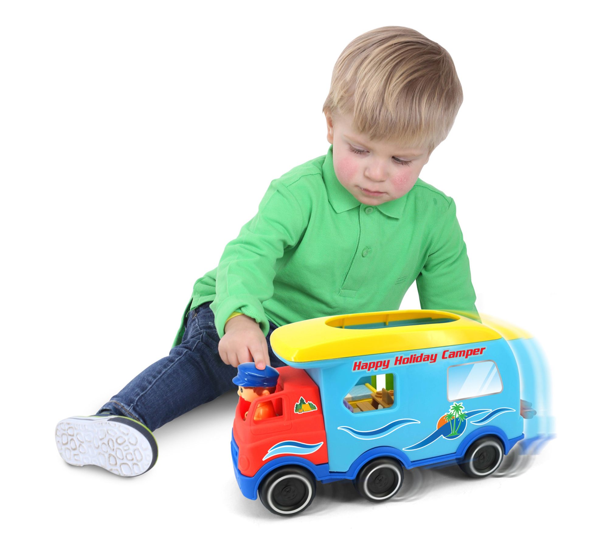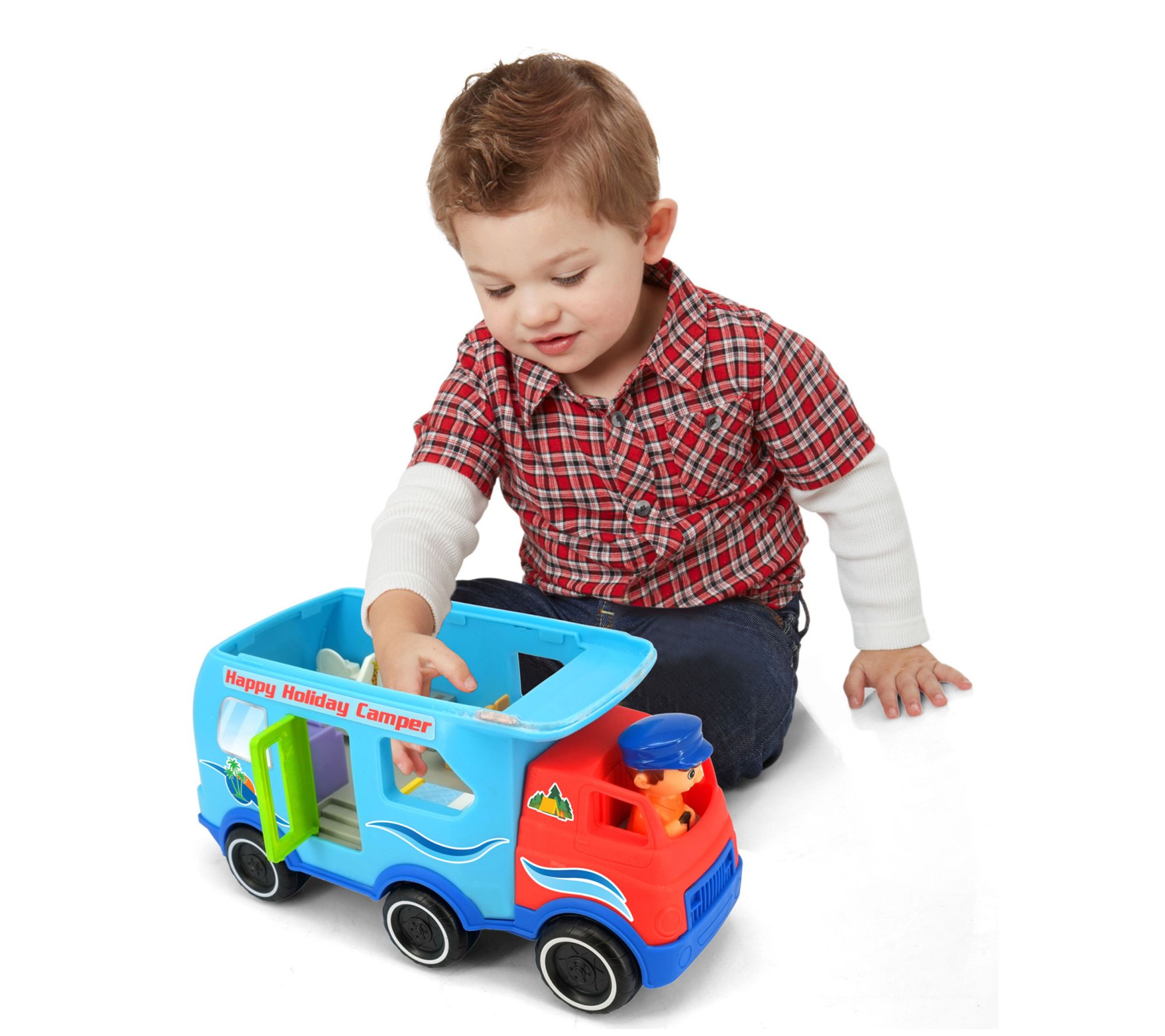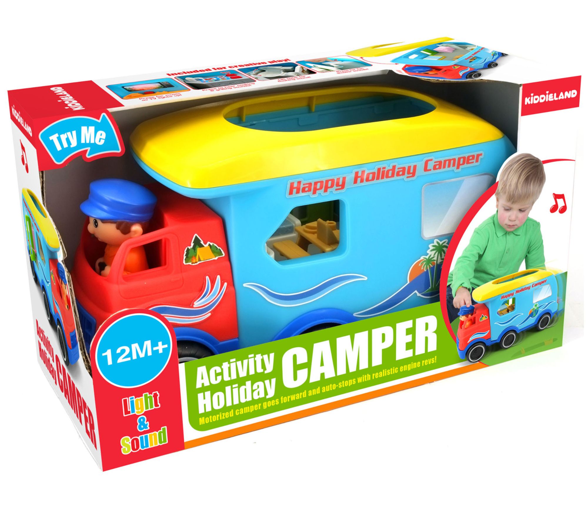 Let your little one embark on a fun-filled adventure with the Kiddieland Light-N-Sound Activity Happy Camper. Complete with motorized action, realistic engine revs, and delightful sounds like water splashing and toilet flushing, this toy brings imaginative play to life. From Kiddieland.