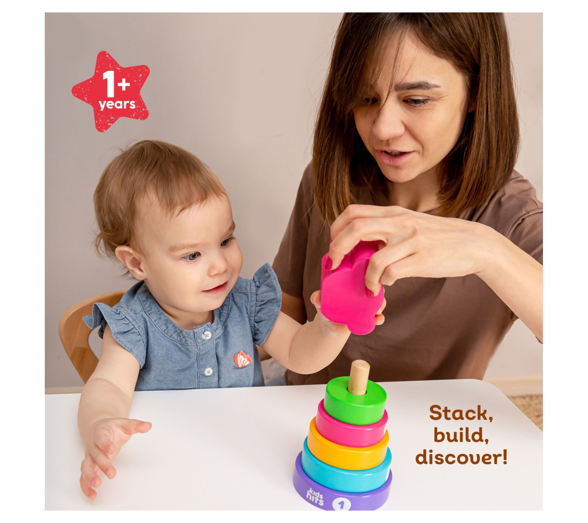 Kids Hits: Stack & Play - Wooden Stacking & Sorting Ring Toy