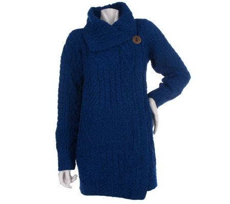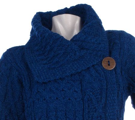 Straight from the Emerald Isle, this merino wool sweater coat is toasty warm and cute to boot. Designed with a one-button closure at the top and a luxurious cable knit, this updated sweater keeps you stylishly snuggly all winter long.
