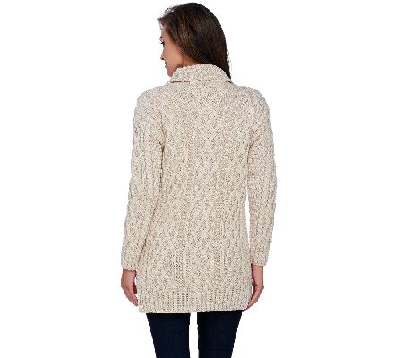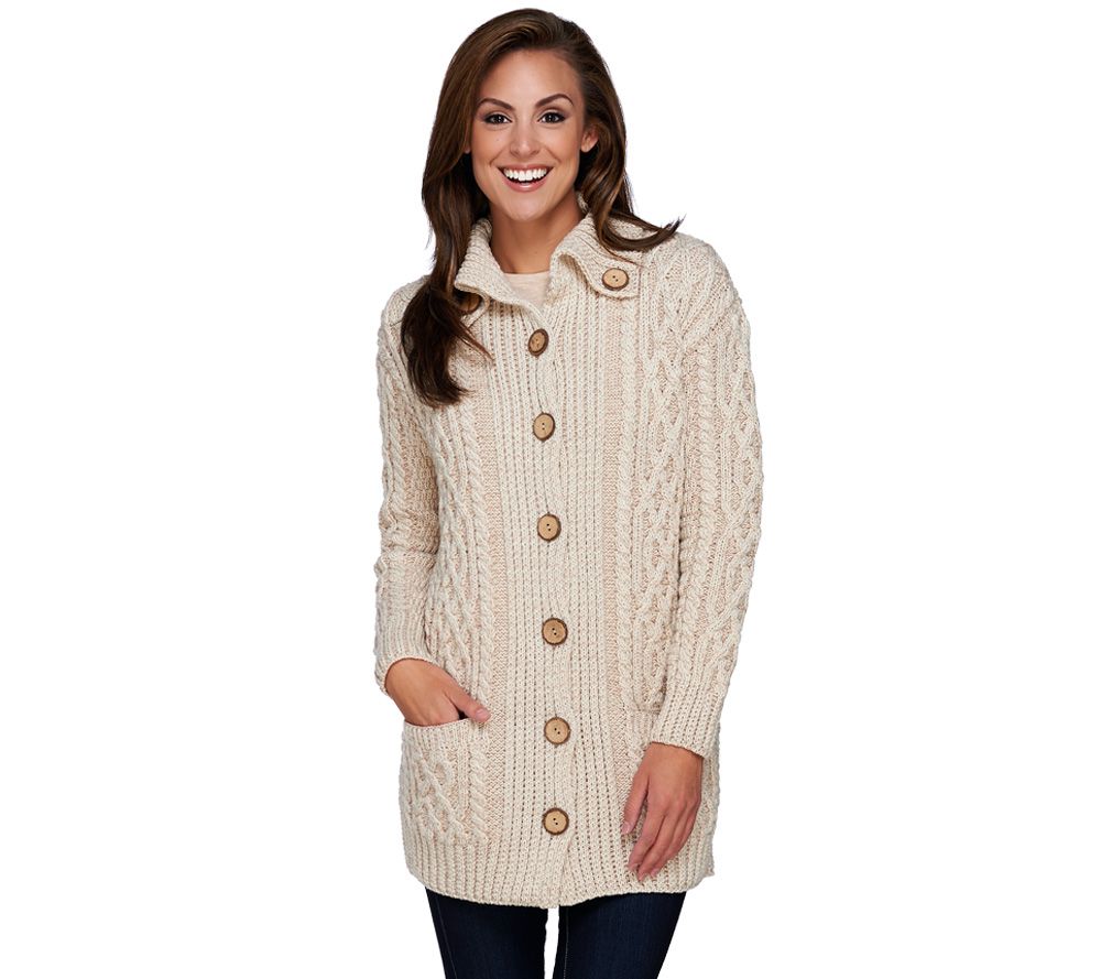 Kilronan Merino Wool Buttoned Collar Plaited Long Cardigan