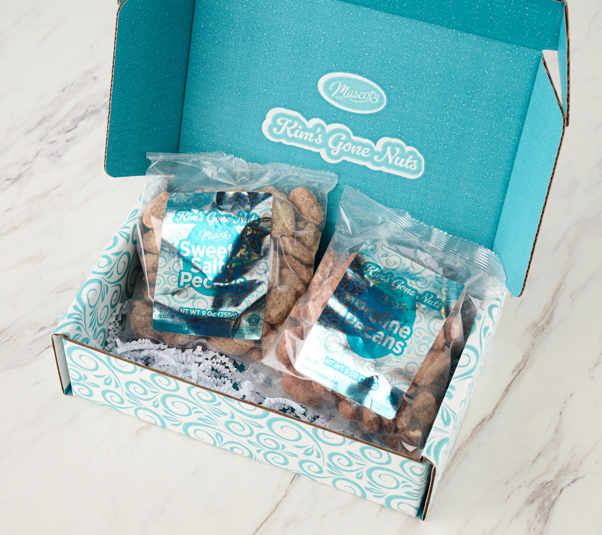 Kim's Gone Nuts! by Mascot (2) 9oz Bags of Pecans with Gift Box