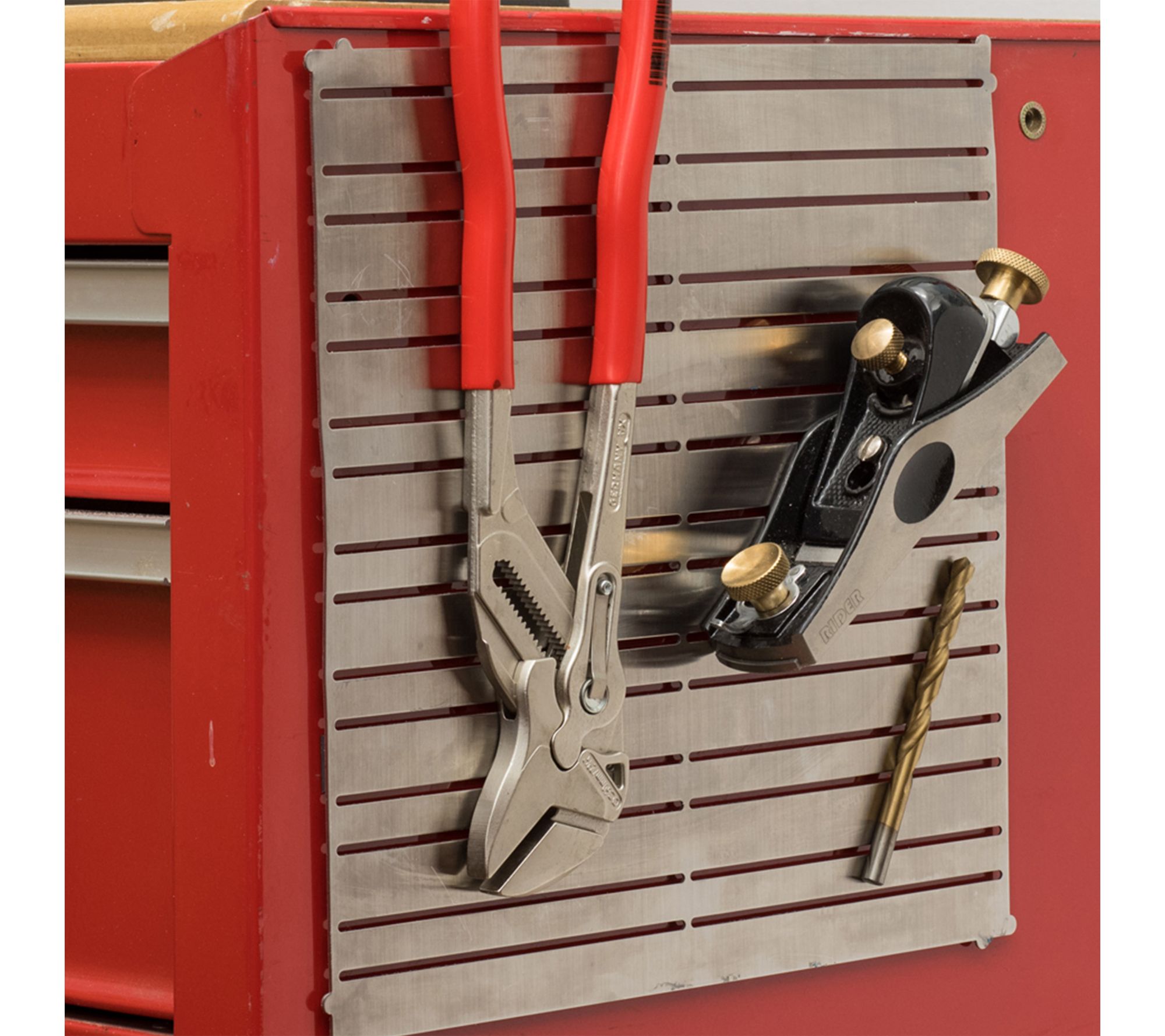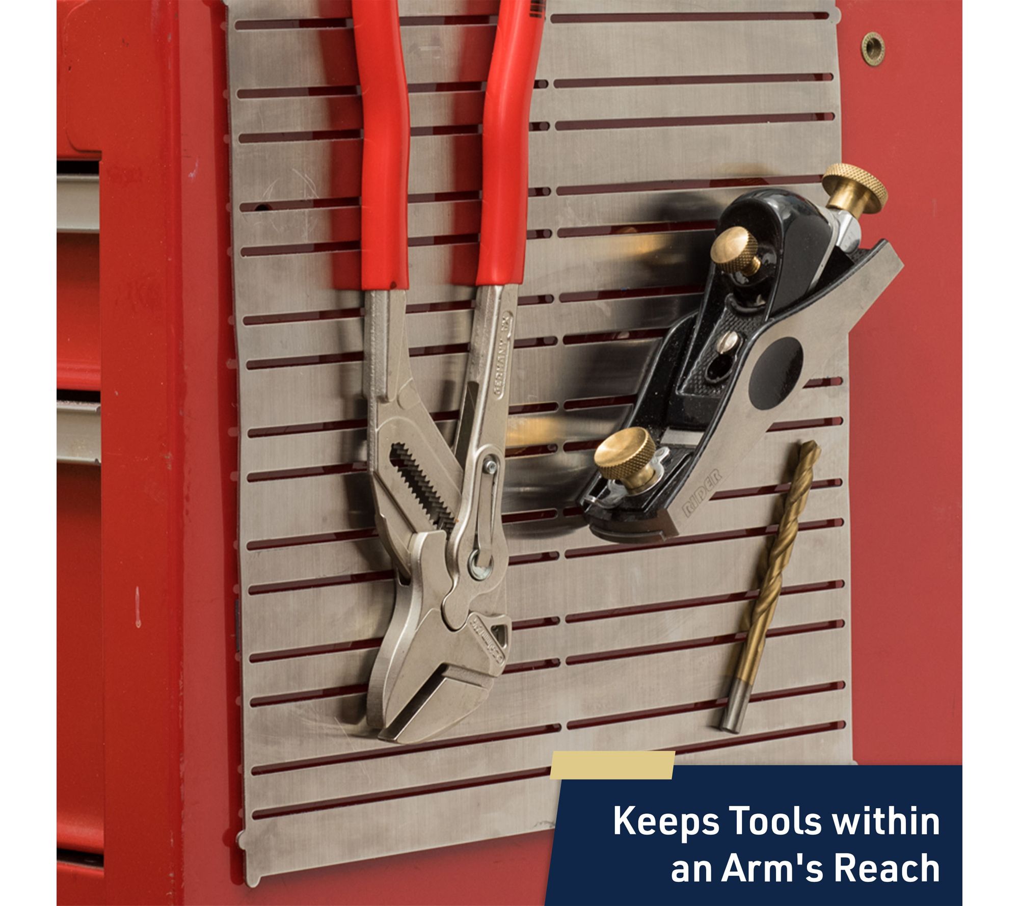 Tidy up your workshop or garage with this magnetic tool holder from Kings County Tools. The magnetized steel panel keeps steel tools like screwdrivers, wrenches, and pliers easily accessible and organized right on the wall. Pre-drilled corner holes make installation simple, and you can add more panels for extra storage as your needs grow.