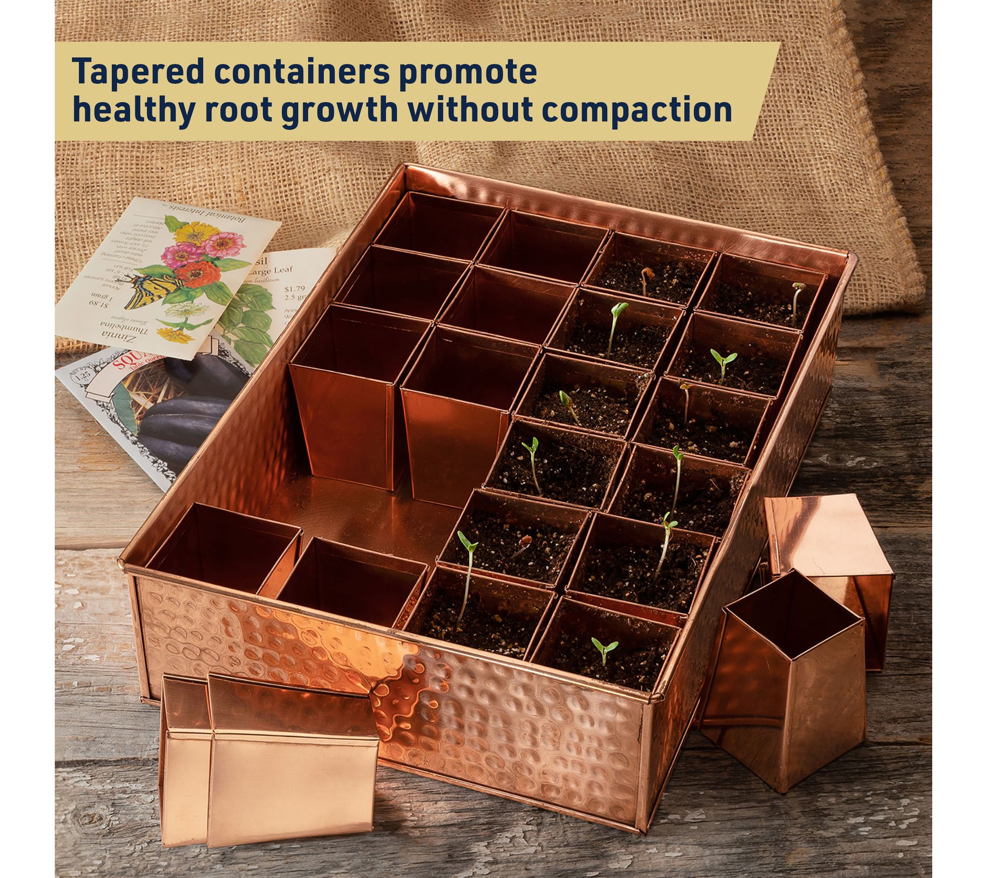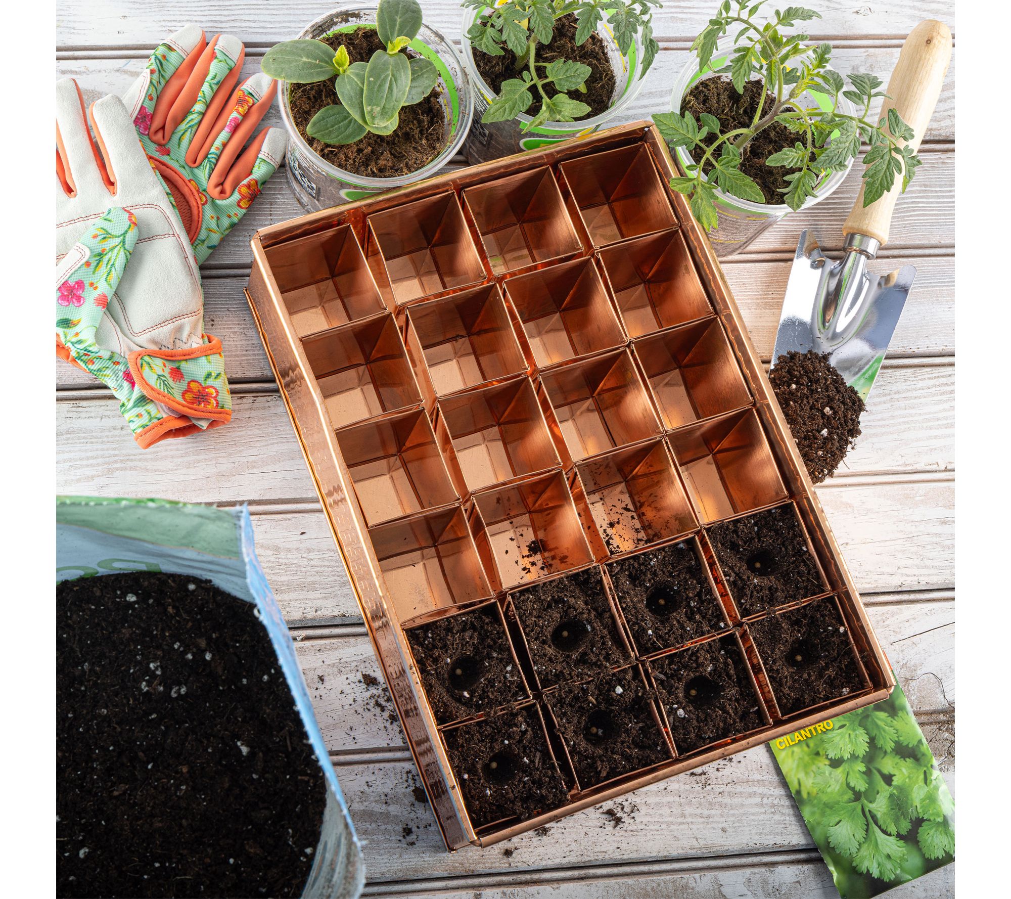 Starting your spring garden is simple with this copper metal seed starter tray, designed to help young plants thrive right from the beginning. The open-bottom design fosters even moisture and lets seedlings transition easily to your garden or bigger pots, while the solid copper helps repels pests. From Kings County Tools.