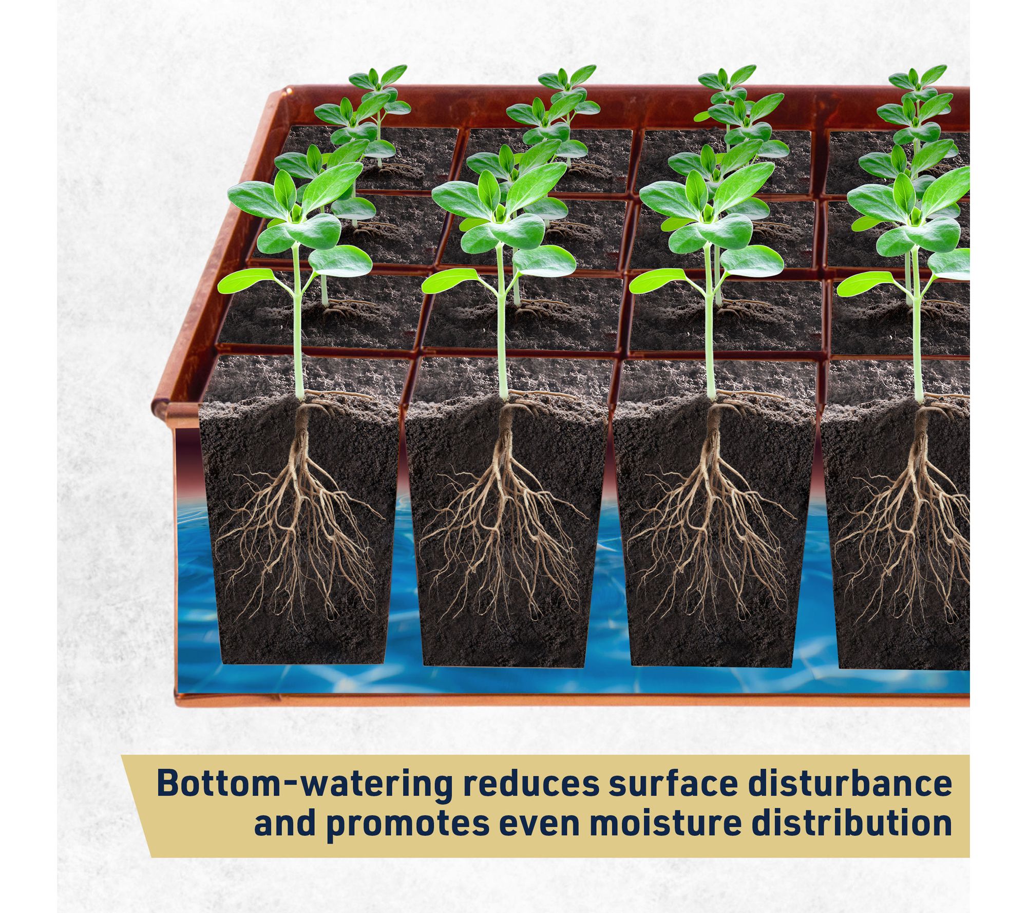 • Open-bottom pots allow for bottom watering and promote even moisture