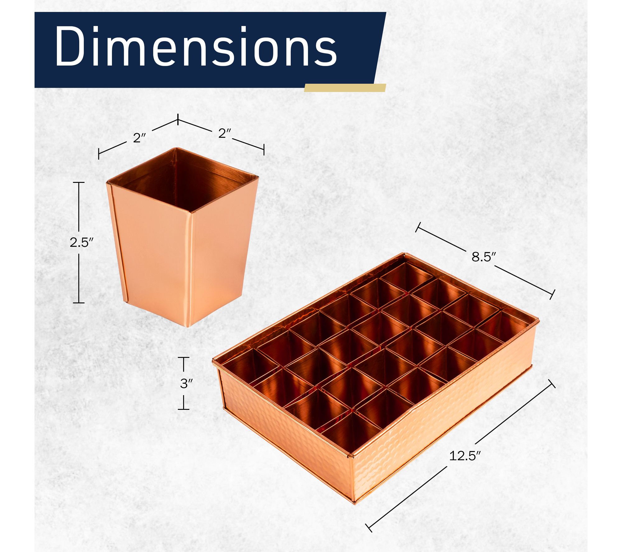 • Measures 12.5" x 8.5" x 3"; individual inserts measure 2" x 2" x 2.5"