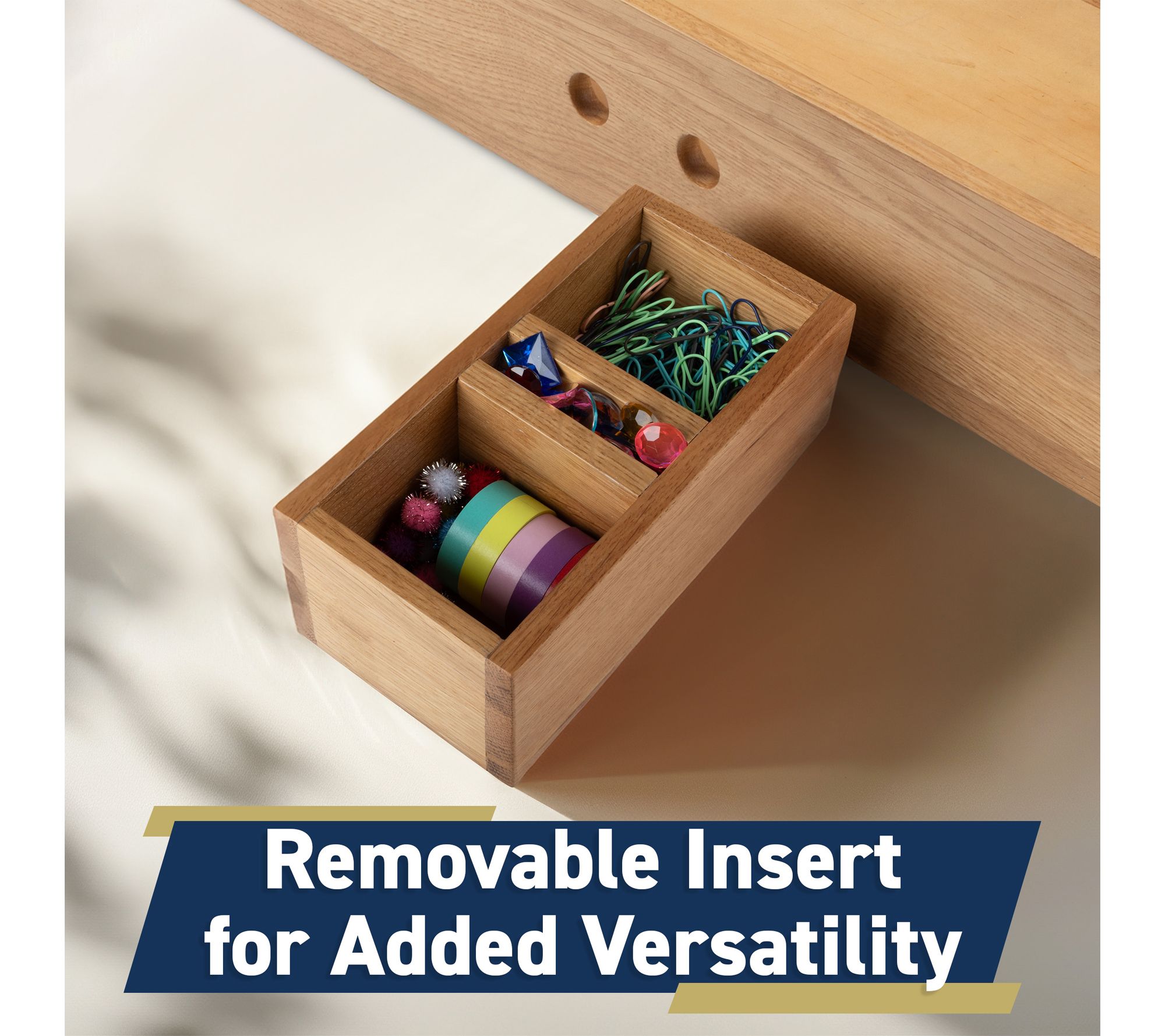 • Removable three-compartment insert for small items