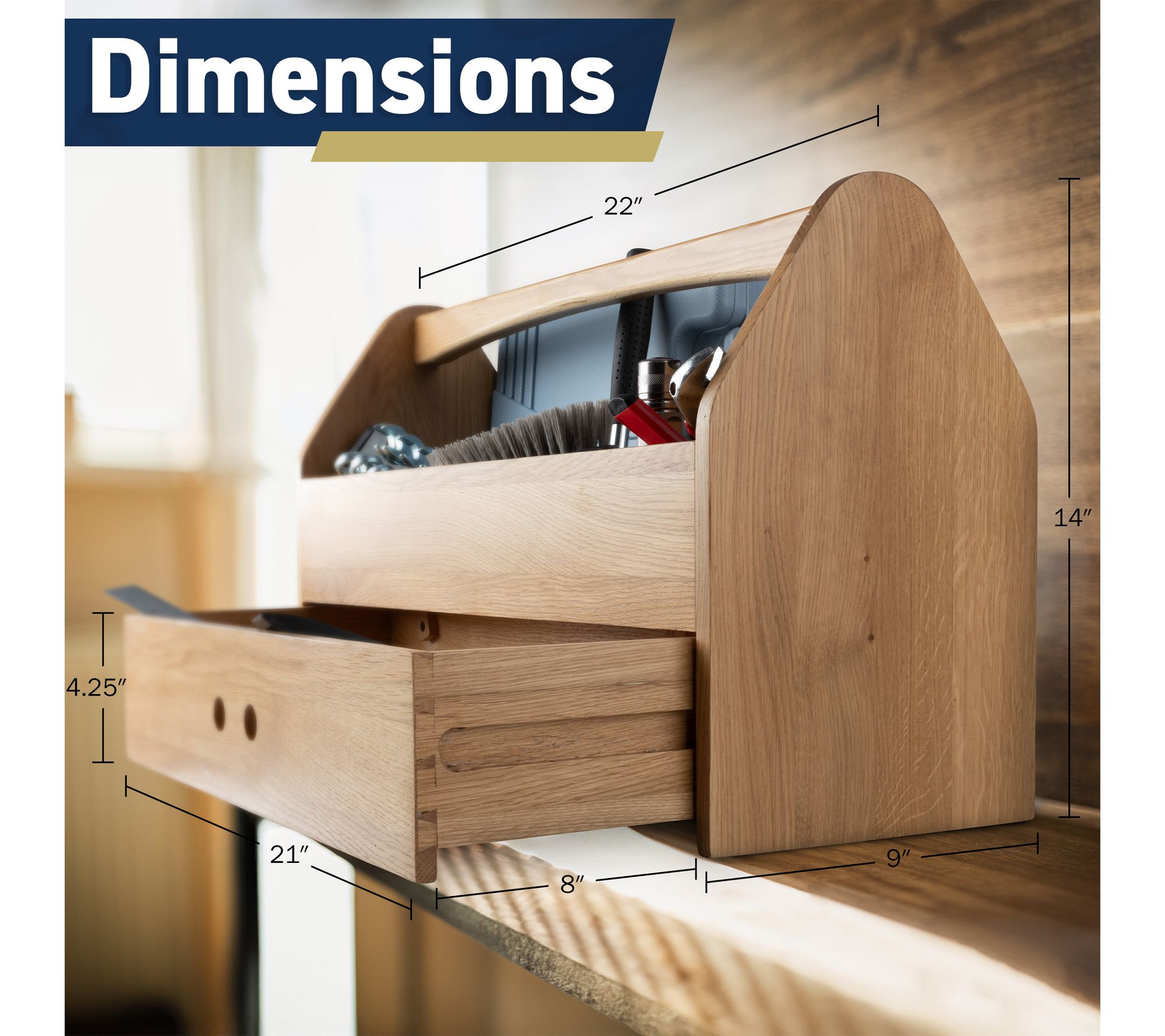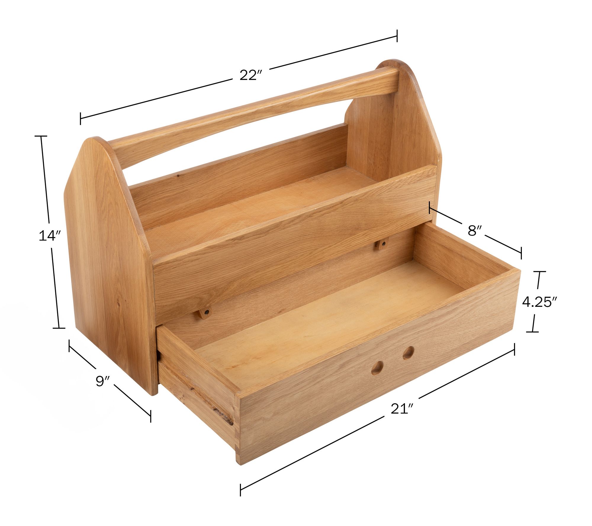 Transform your workshop, garage, or crafting room with the Tool Box Caddy, designed to simplify organizing and transporting everything from gardening tools to art supplies. The sturdy oak and poplar construction, removable three-compartment insert, and spacious drawer make it easy to keep projects moving and supplies close at hand. Take on tasks confidently knowing your essentials are neatly stored and portable. From Kings County Tools.