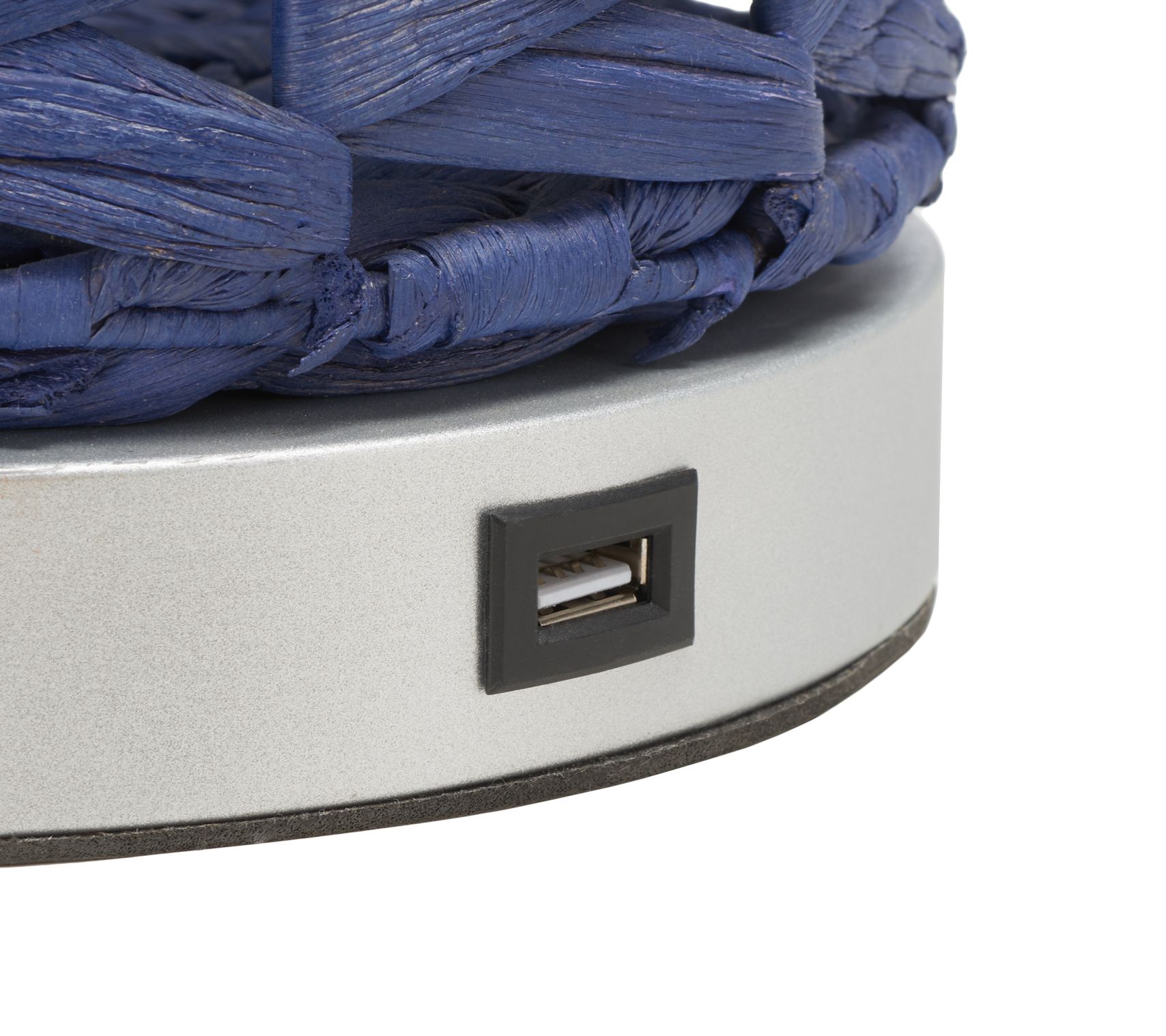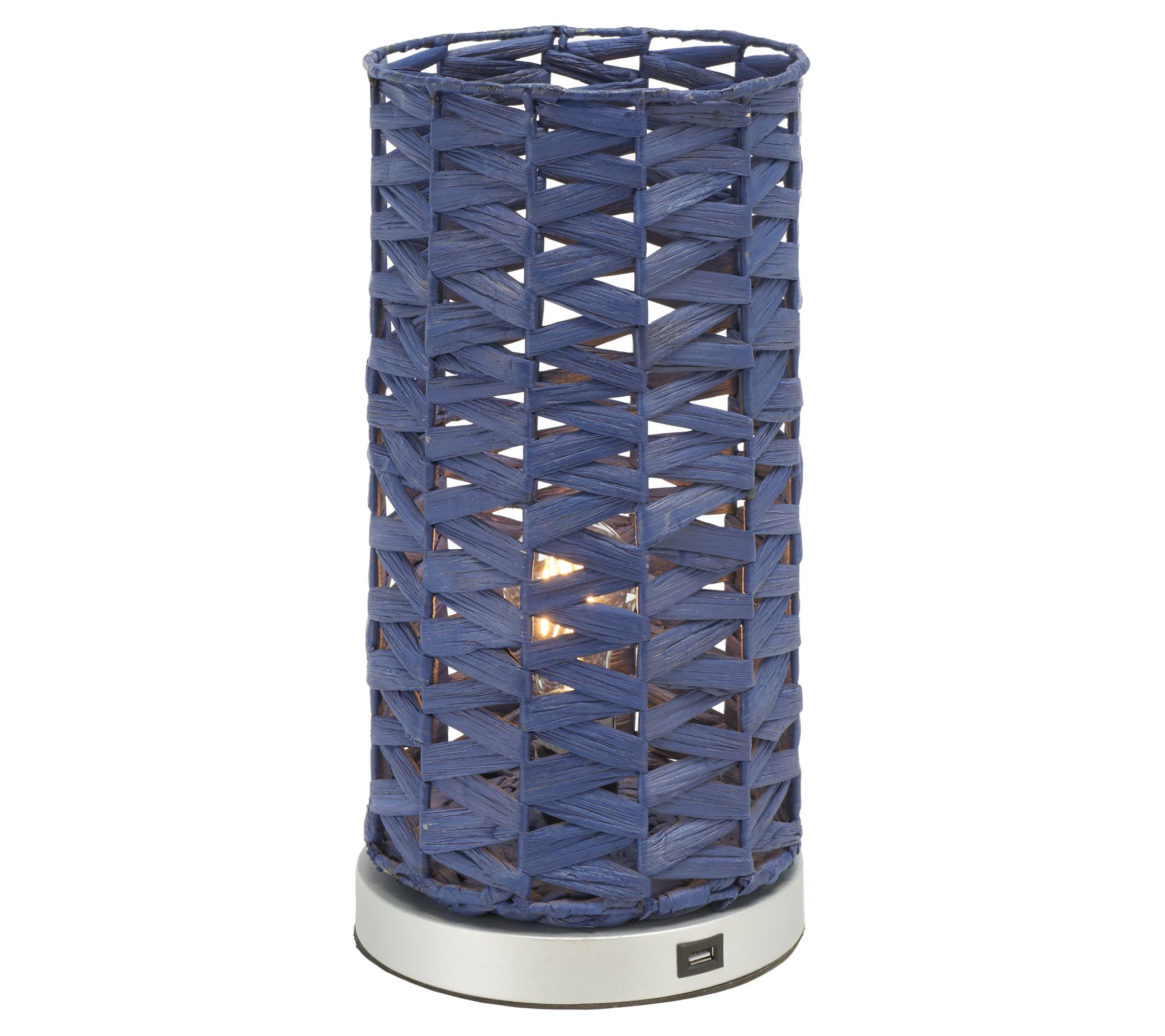 Charge your device while elegantly illuminating any room with the Kirin table lamp that casts decorative light patterns through its woven water hyacinth design. From the Valerie Parr Hill Collection.
