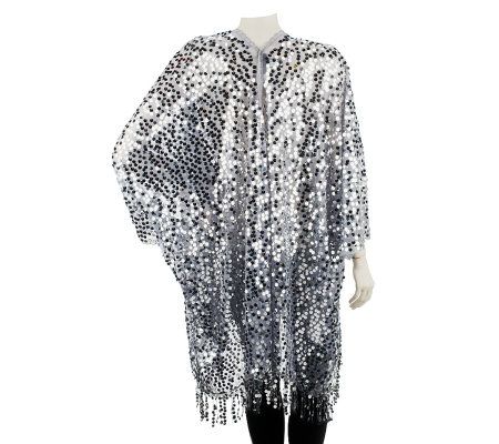 Steal the spotlight in this fantastic mesh robe. Dripping with disc-style sequins, it adds a downright dazzling dose of glamour to your look. From Kirks Folly.
